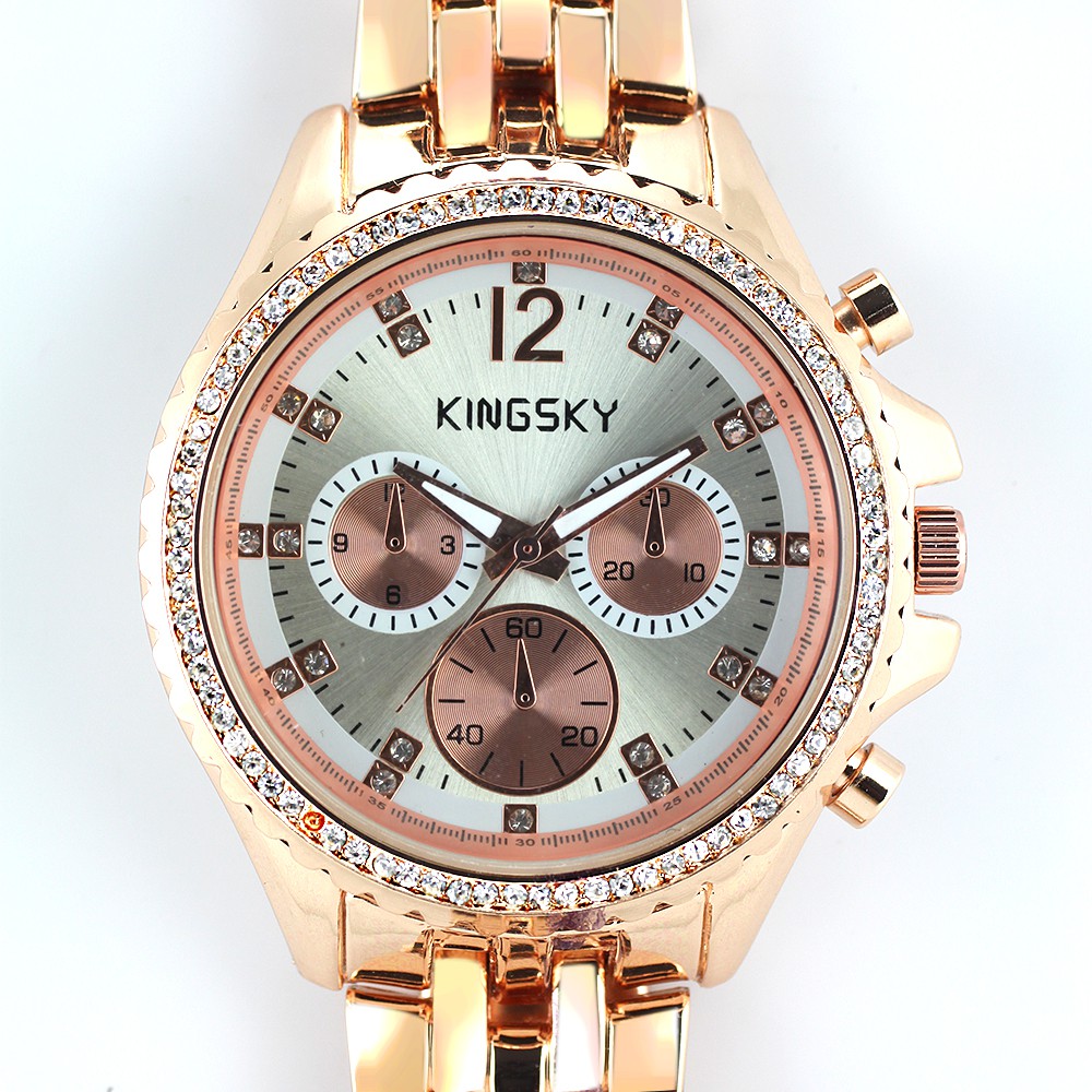Dámské módní hodinky KINGSKY W03J.10524.E - kovové růžově zlacené pouzdro - stříbrný/růžový číselník