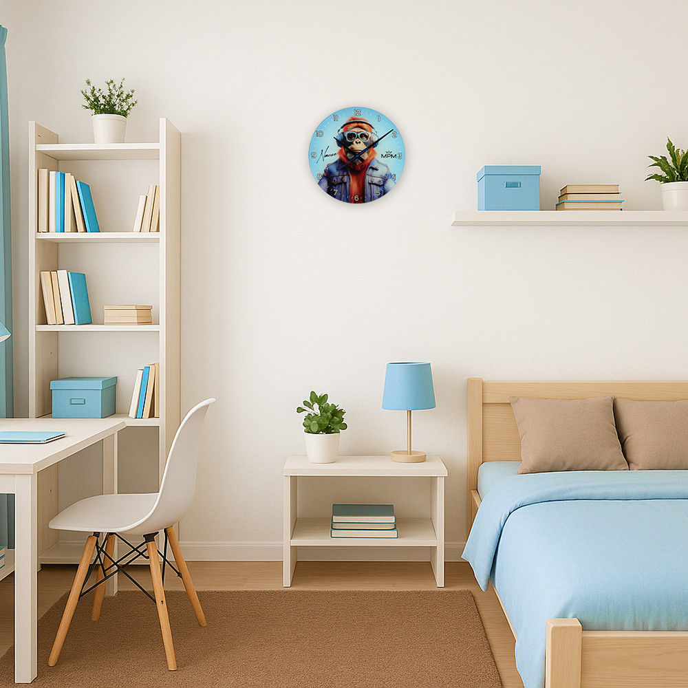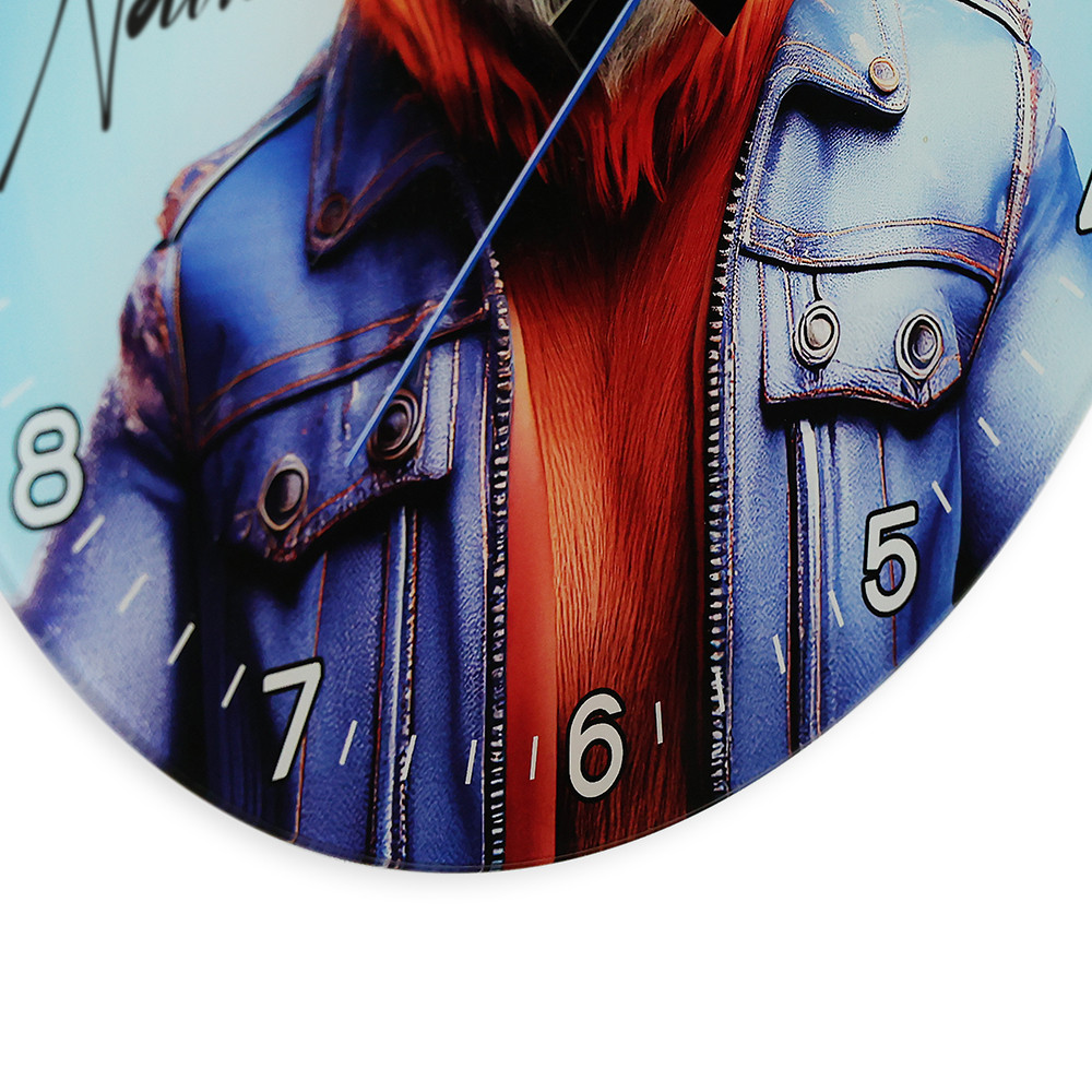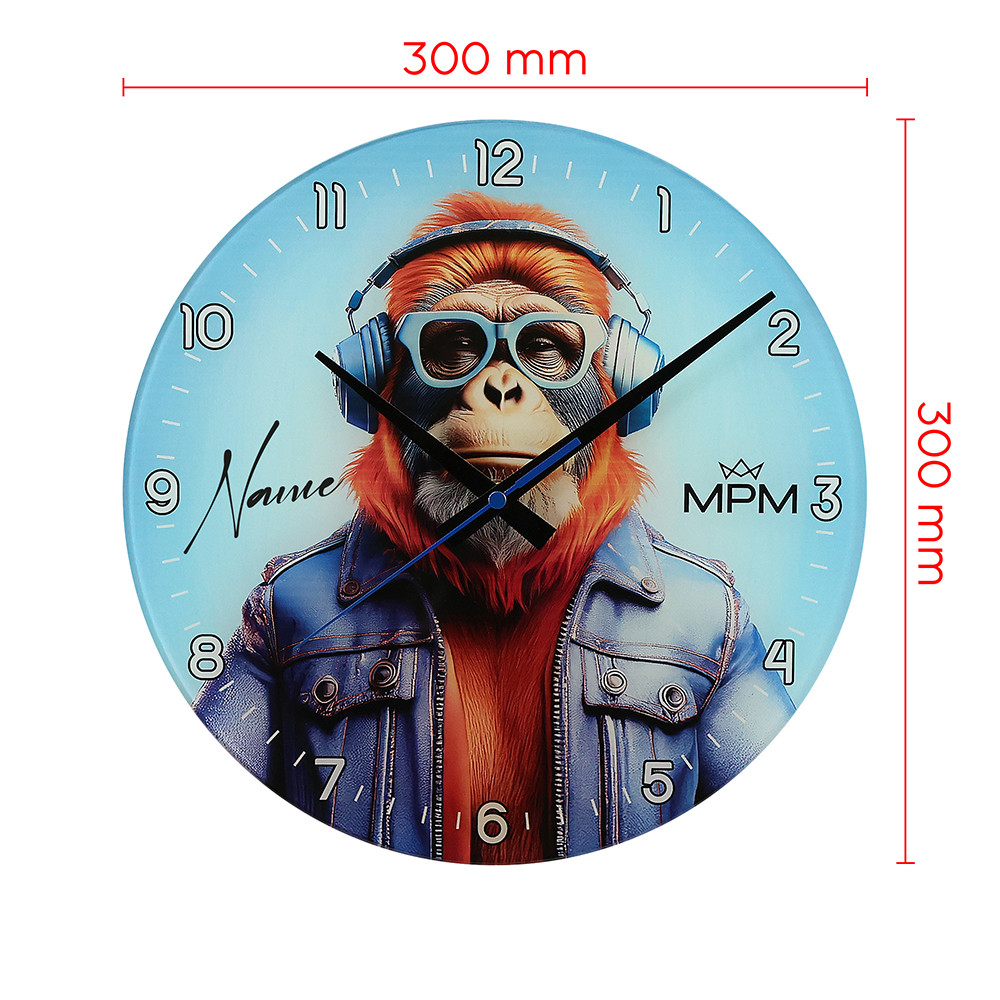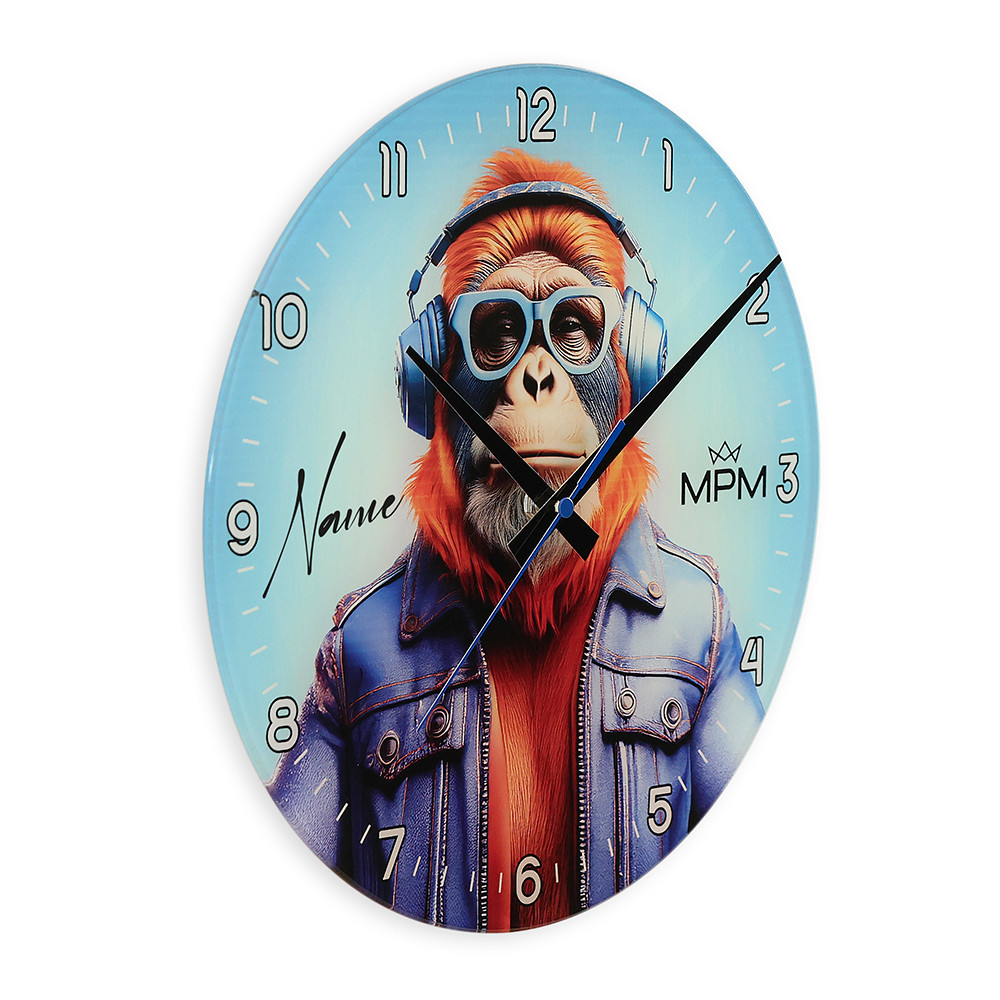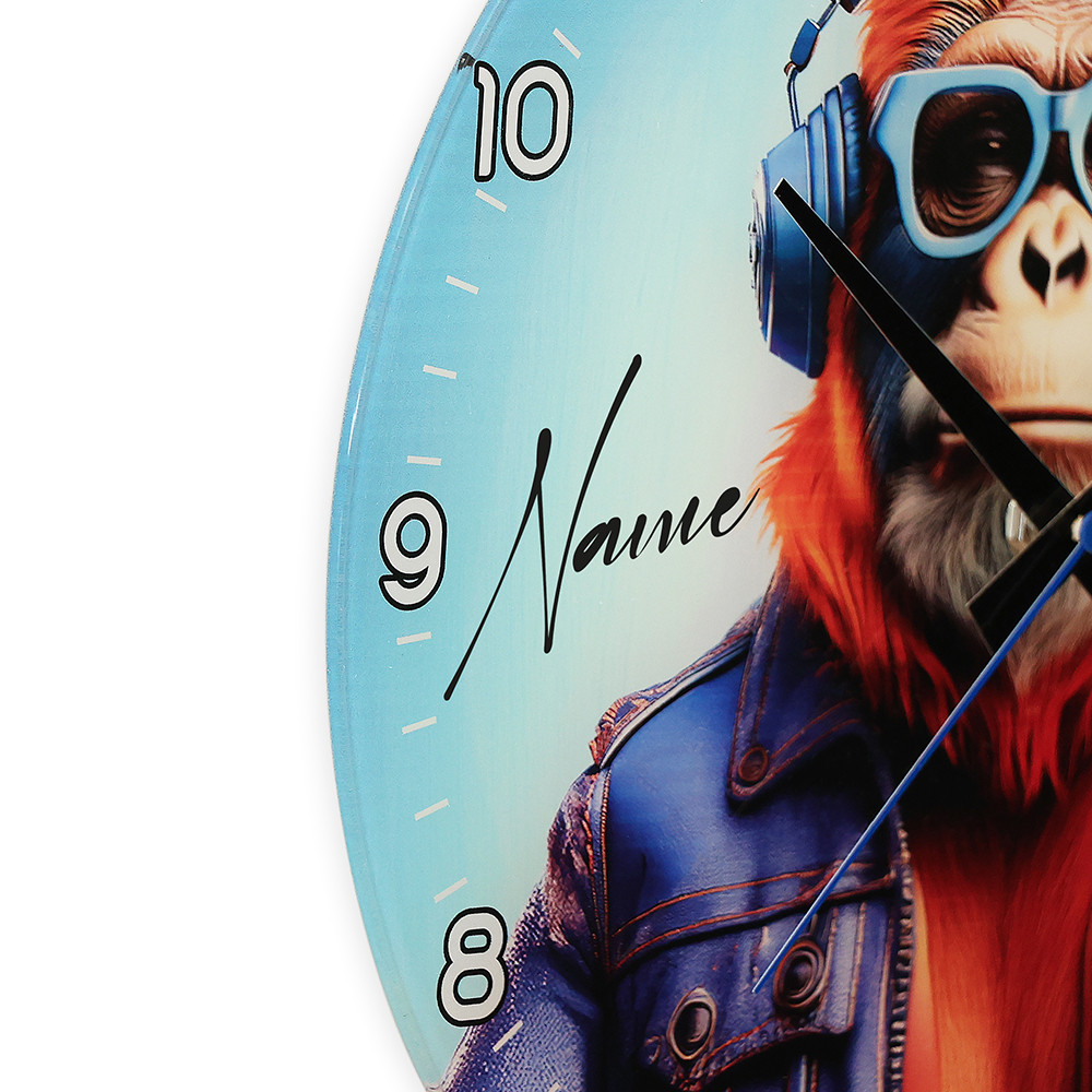 Originální skleněné nástěnné hodiny s hustými zvířecími motivy. Stylový design s žirafou, orangutanem a leguánem ve slunečních brýlích rádi potiskneme jménem jejich majitele, a to zcela bezplatně. Maximální délka jména je 8-9 znaků. Pestré detaily hodin dokonale rozjasní každý kout a vnesou do prostoru dětského pokoje lehkost, šarm a skvělou náladu.