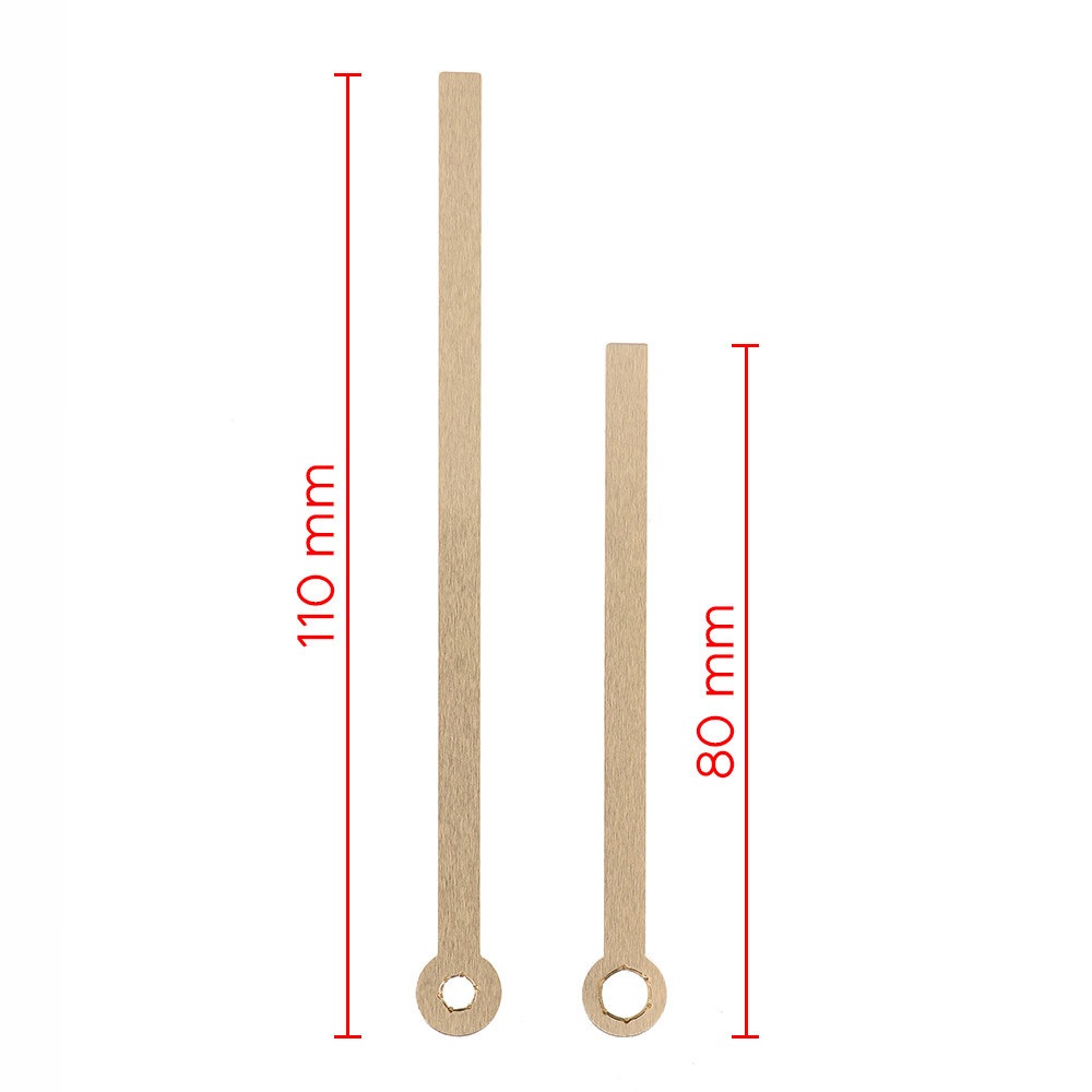 Two-piece set of metal hands (hour and minute) measuring 76 mm and 95 mm. The hour hands are compatible with standard quartz hour movements: 5168S, 7168S, 8848S, 8858S, D316, M2188, F333.
