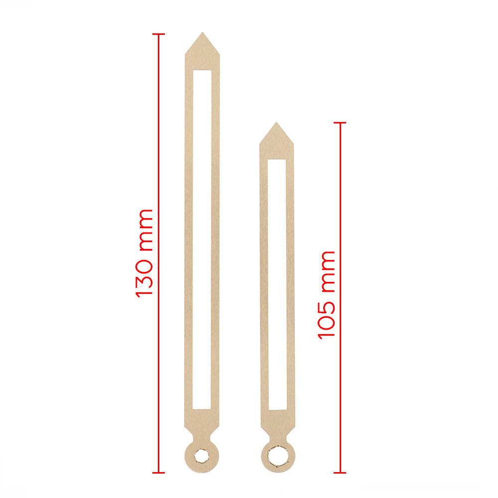 Two-piece set of metal hands (hour and minute) measuring 100 mm and 125 mm. The hour hands are compatible with standard quartz hour movements: 5168S, 7168S, 8848S, 8858S, D316, M2188, F333.