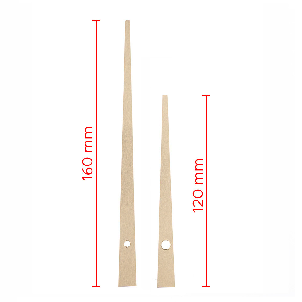 Two-piece set of metal hands (hour and minute) measuring 92 mm and 137 mm. The hour hands are compatible with standard quartz hour movements: 5168S, 7168S, 8848S, 8858S, D316, M2188, F333.