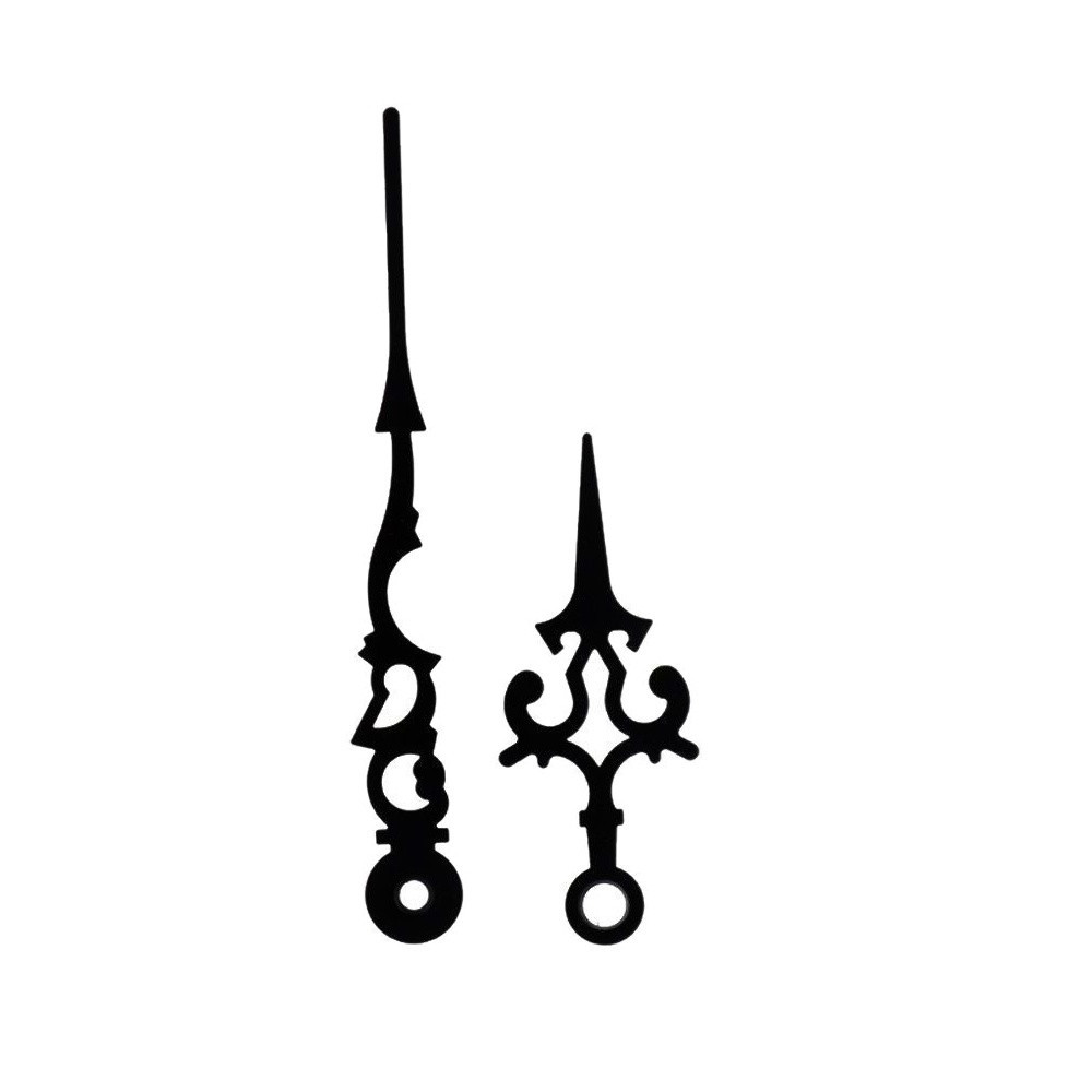 Two-piece set of metal hands (hour and minute) measuring 60 mm and 97 mm. The hour hands are compatible with standard quartz hour movements: 5168S, 7168S, 8848S, 8858S, D316, M2188, F333.