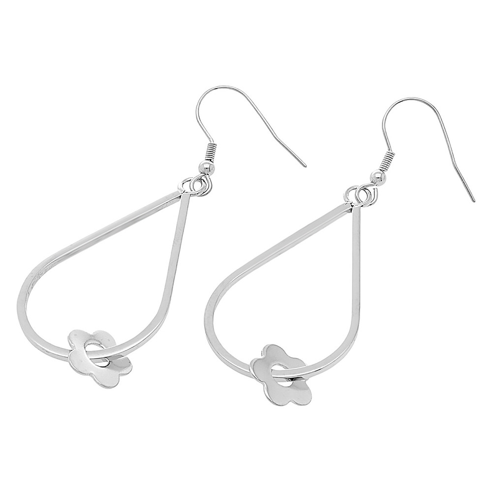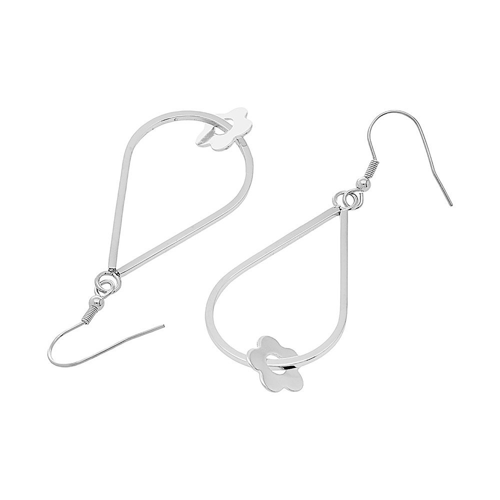 Drawn ladies earrings made of surgical steel with a flower inside a dominant teardrop.