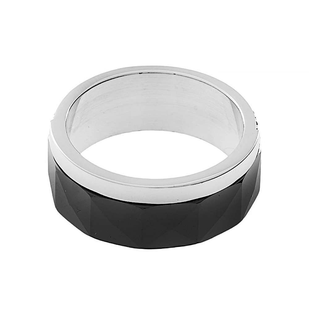 Ceramic ring 7196B (size 53-54) - silver-black colour