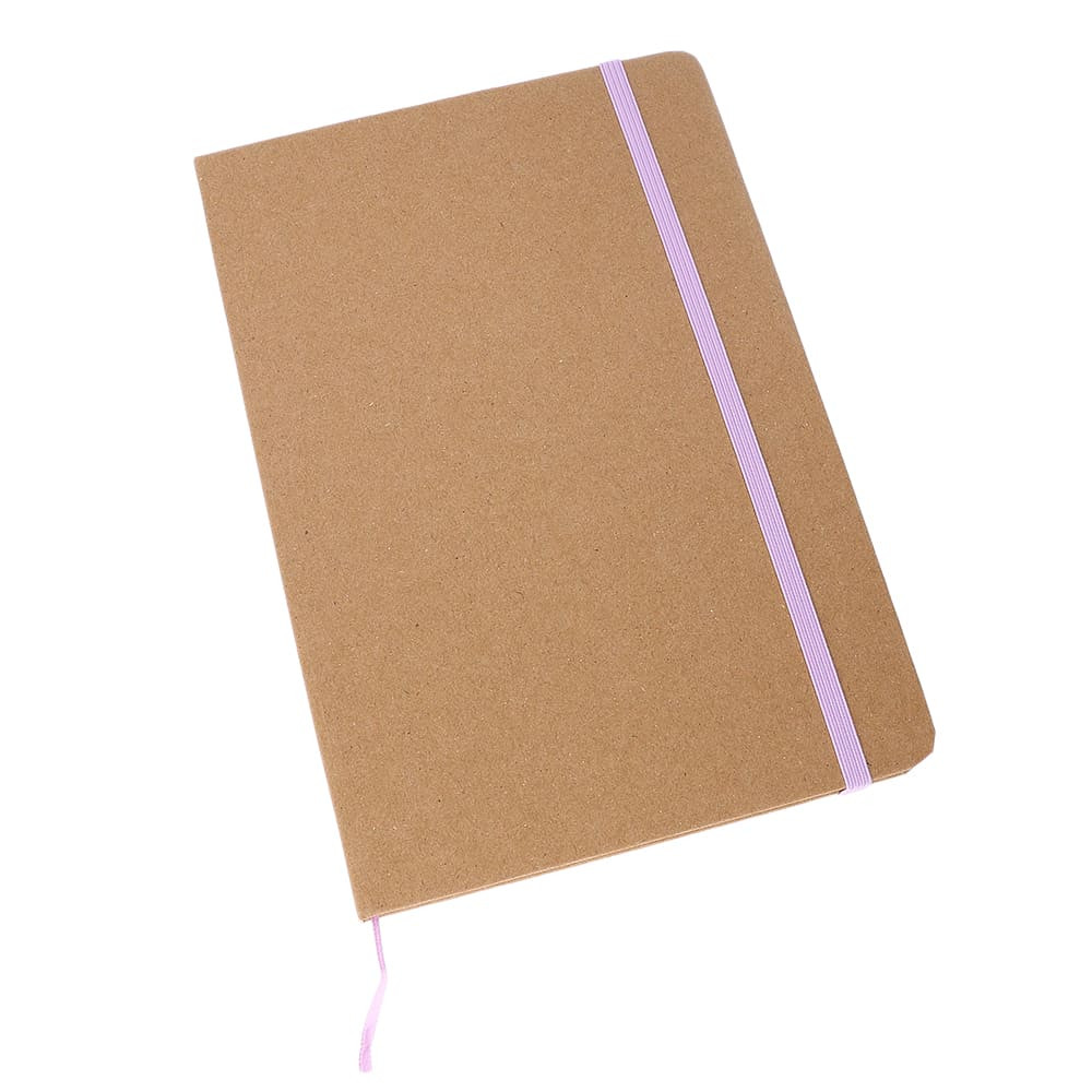 Lined notebook with recycled kraft paper covers. The notebook contains 80 lined A5 sheets. The notebook includes a textile bookmark and a locking elastic band to prevent unwanted opening.