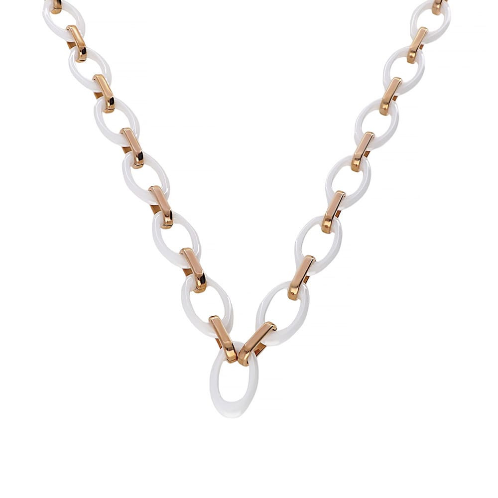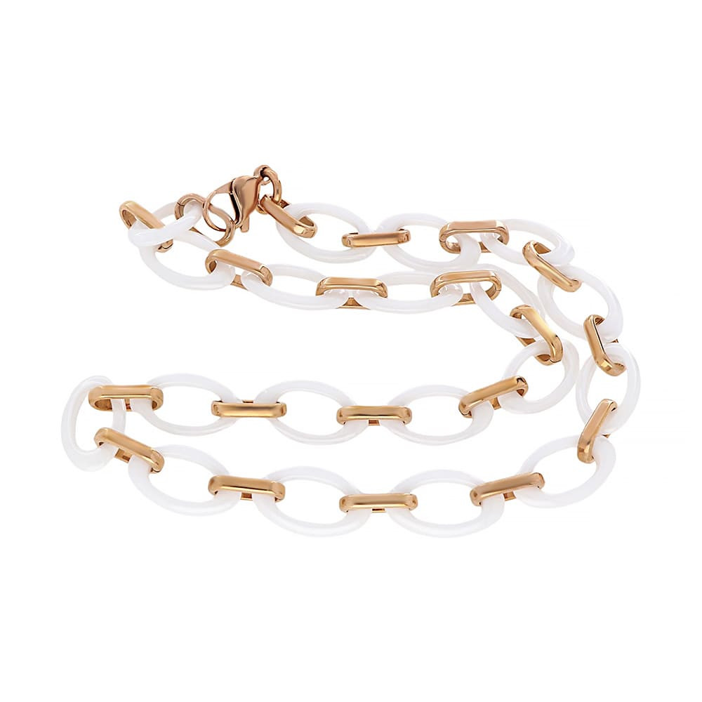 Stainless steel necklace 6570 W - white-rose gold colour