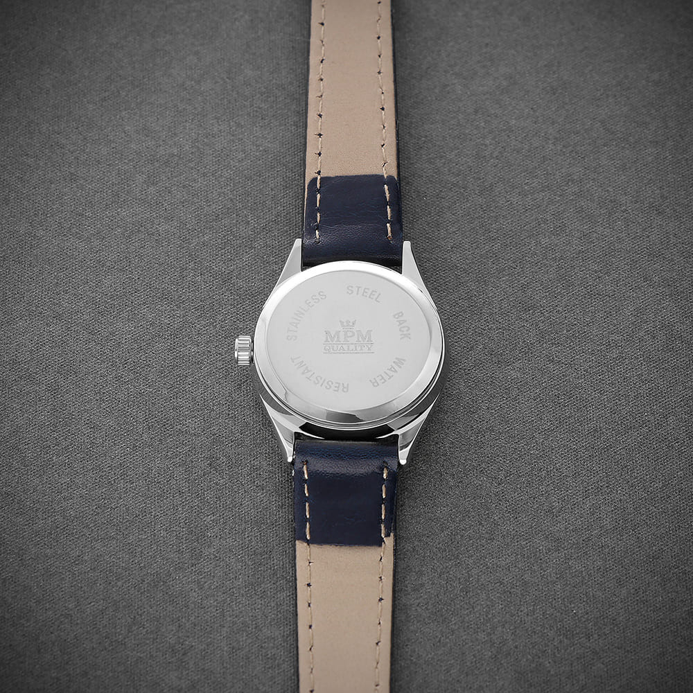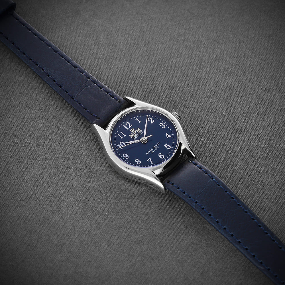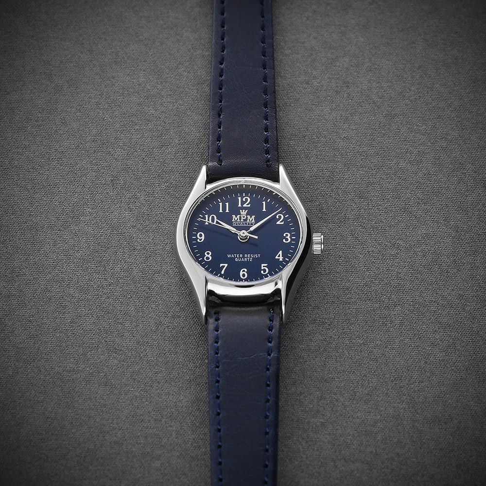 Klasické dámské hodinky MPM Caroline - B - kovové pouzdro - tmavě modrý/bílý číselník