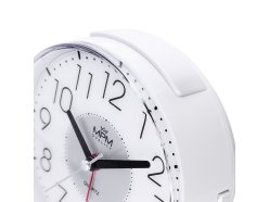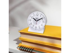 Plastový multifunkční budík se světlem a nožičkami. Snadné zjištění aktuálního času za tmy poskytne osvětlení budíku. Díky použitému quartzovému strojku s plynulým chodem není tikání budíku takřka slyšet. Budík nabízí možnost opakovaného odložení alarmu o 5 minut. Protože se myslelo i na největší spáče, hlasitost a intenzita alarmu se postupně zvyšuje. Zvukovou zesilujícího nahrávku alarmu si můžete poslechnout v záložce Dokumenty.