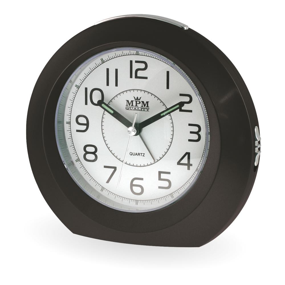Kulatý analogový budík se zesilujícím alarmem v různobarevném provedení.