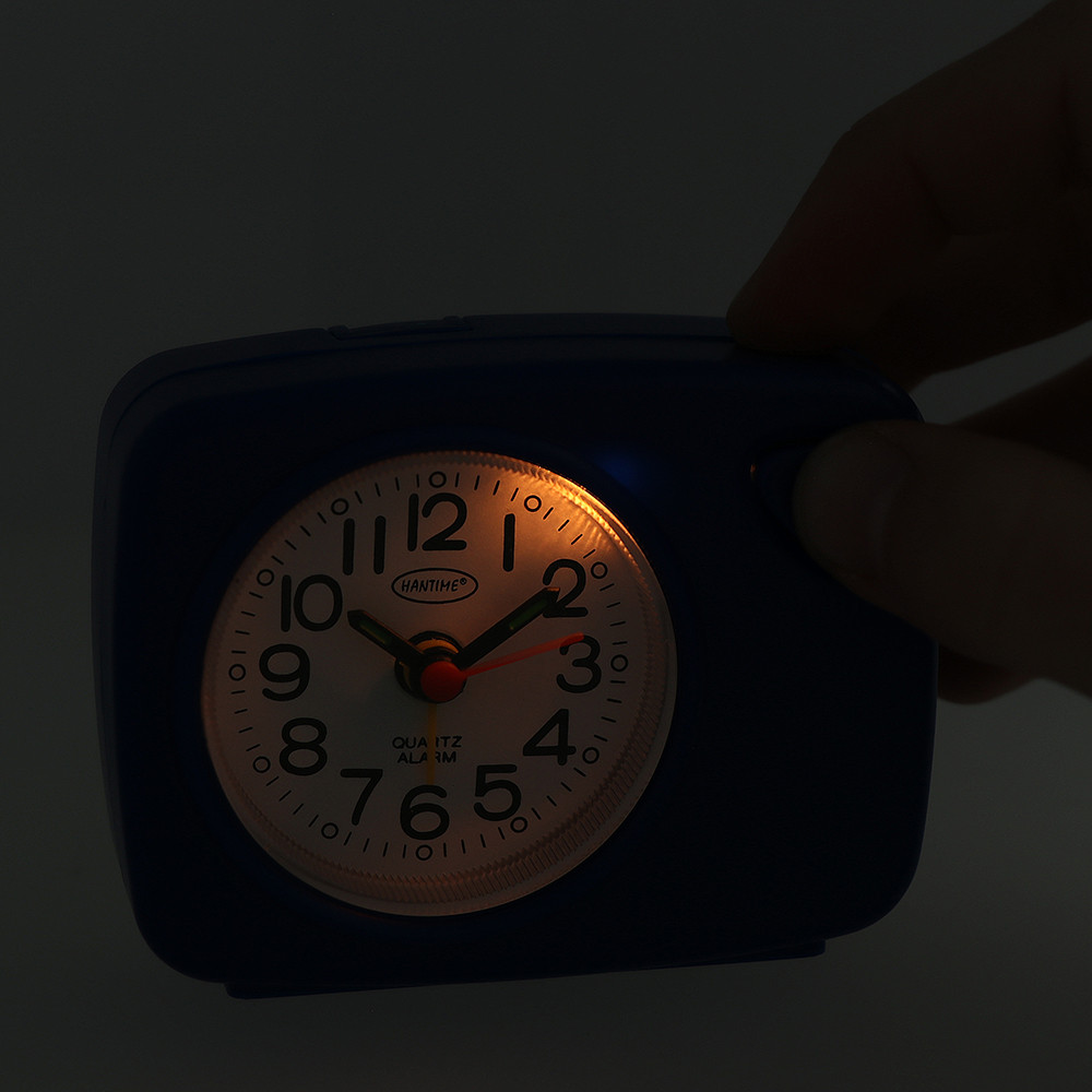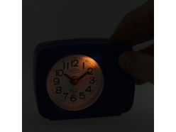 Analogový budík vybaven ručičkami s luminiscenční vrstvou a s nočním osvětlením. Klasický analogový budík.
