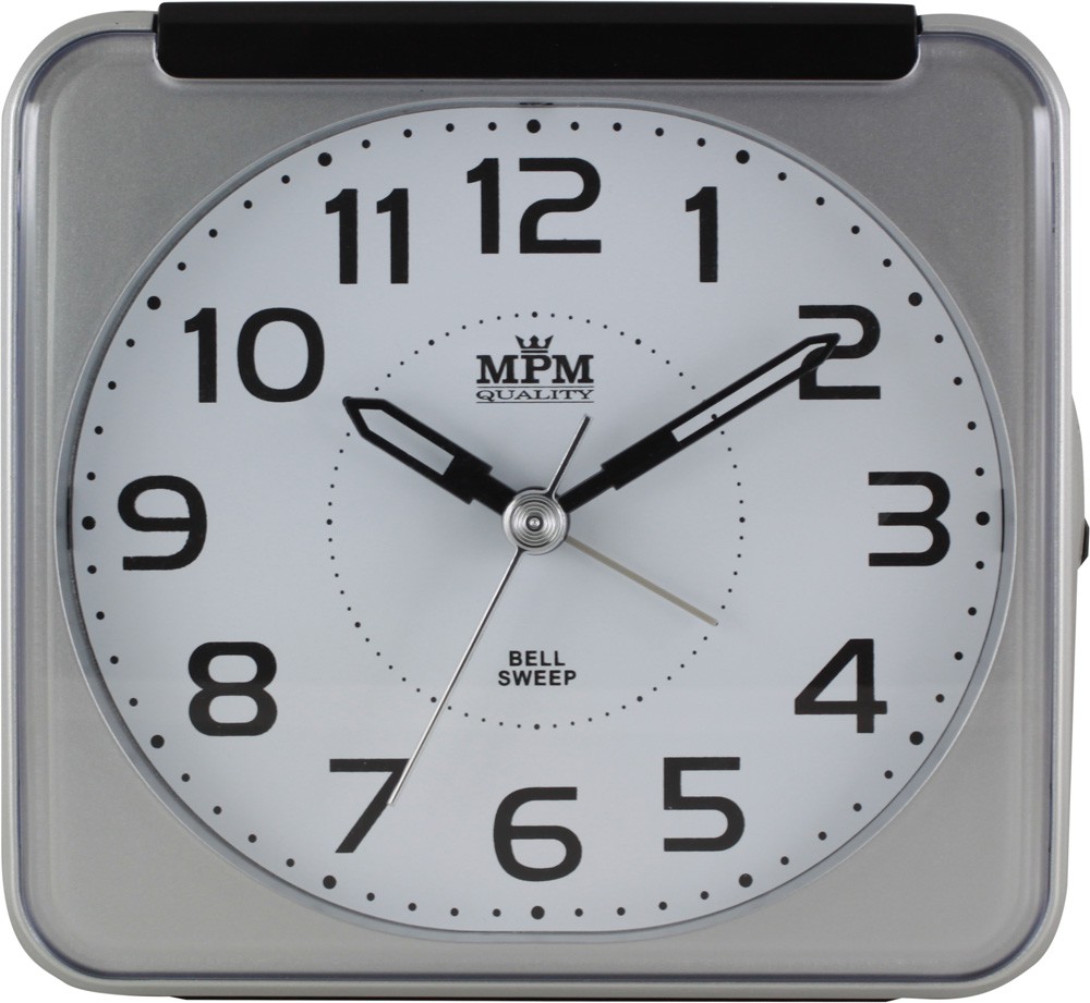 Analogový budík plastový stříbrný/černý MPM C01.3529