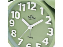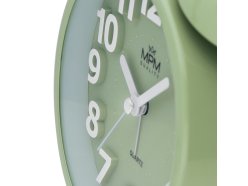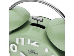 Analogový kovový budík MPM Happy Morning - pistáciový