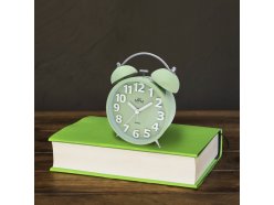 Kovový budík s klasickým mechanickým zvoněním v trendy pastelových barvách. Probudí i ty největší spáče. Vypnutí zvonění na zadní straně.
