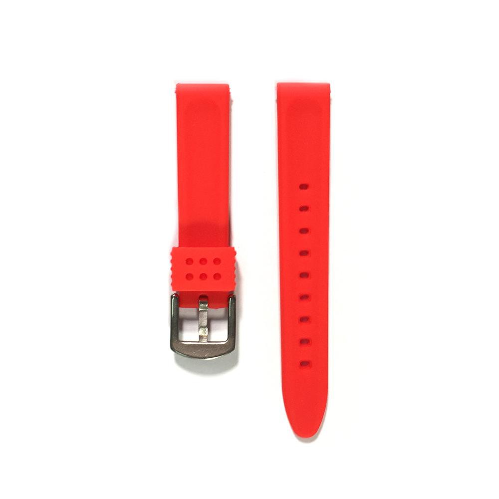 Kvalitní červený silikonový řemínek s pevnou ocelovou sponou.