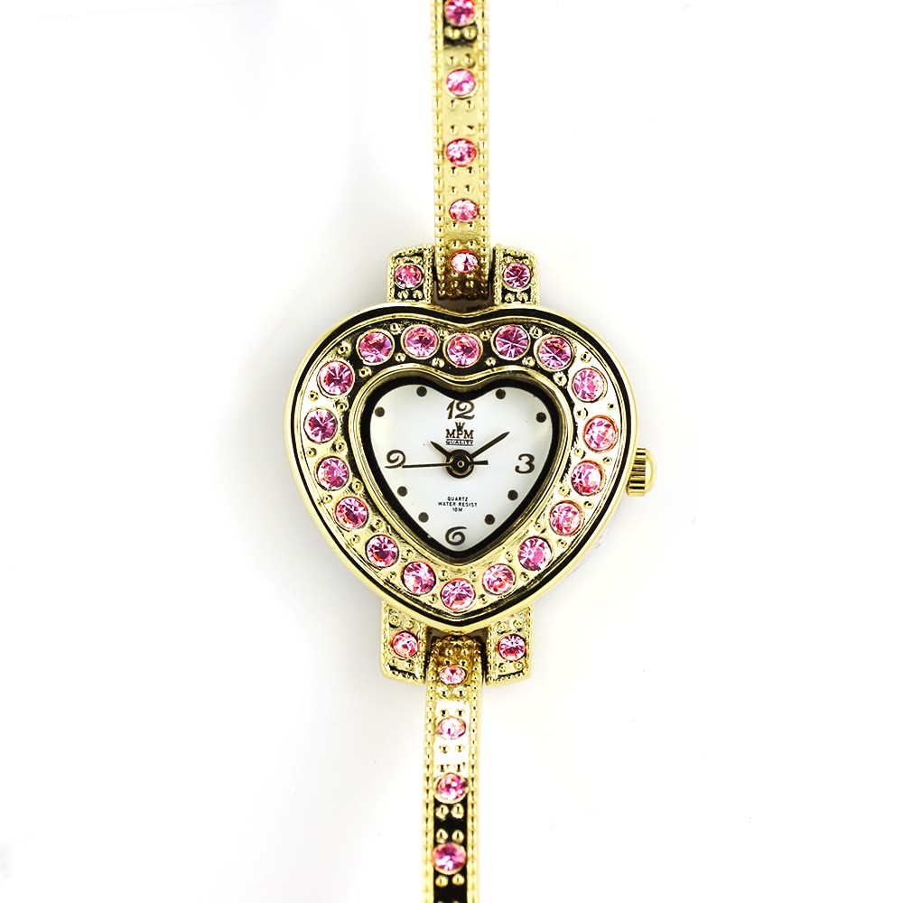 Dámské hodinky ve tvaru srdce po obvodu zdobené zirkony.