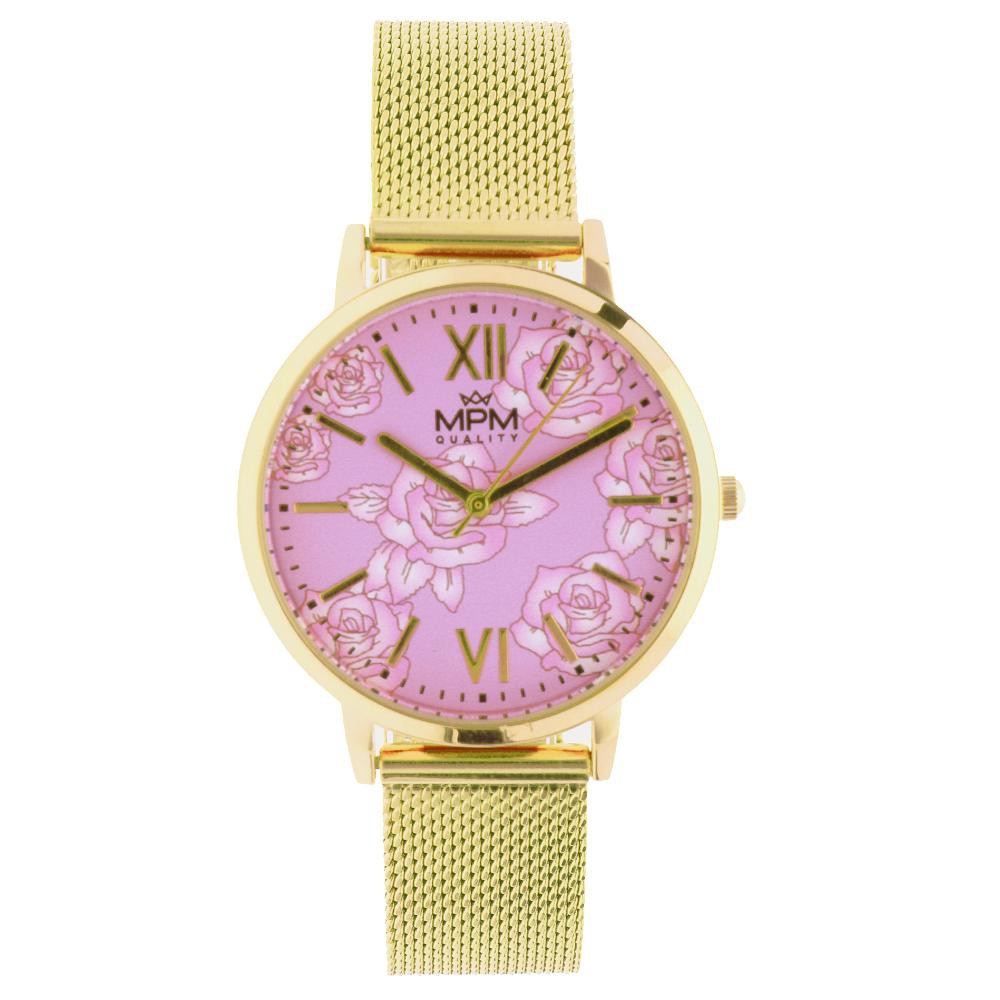 Dámské módní hodinky MPM Flower 11271.D - kovové pouzdro - růžový/zlatý číselník
