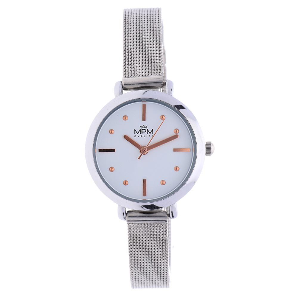 Dámské módní hodinky MPM Mode 11267.B - kovové pouzdro - bílý/růžový číselník