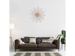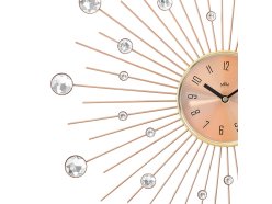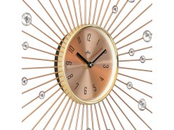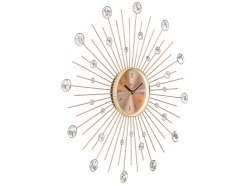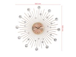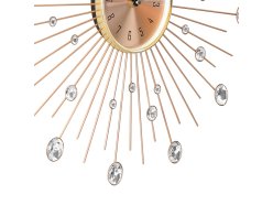 Nástěnné kovové hodiny hvězdicového vzhledu se zlatým číselníkem a designovými prvky připomínající drahé kameny.