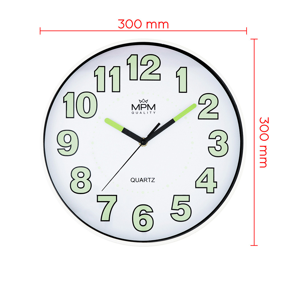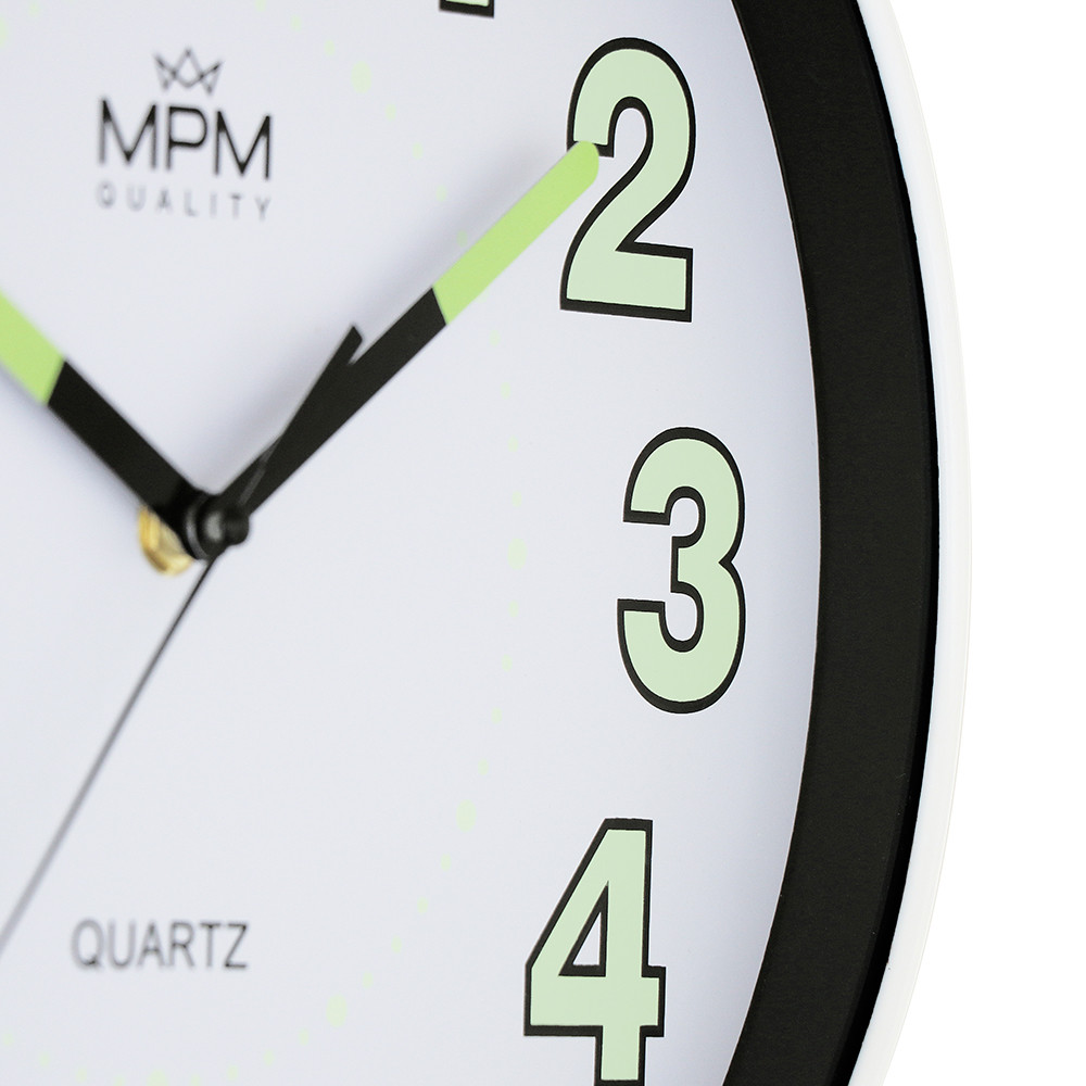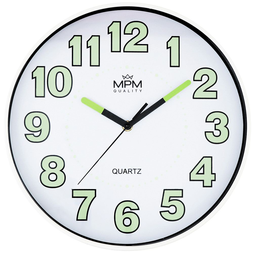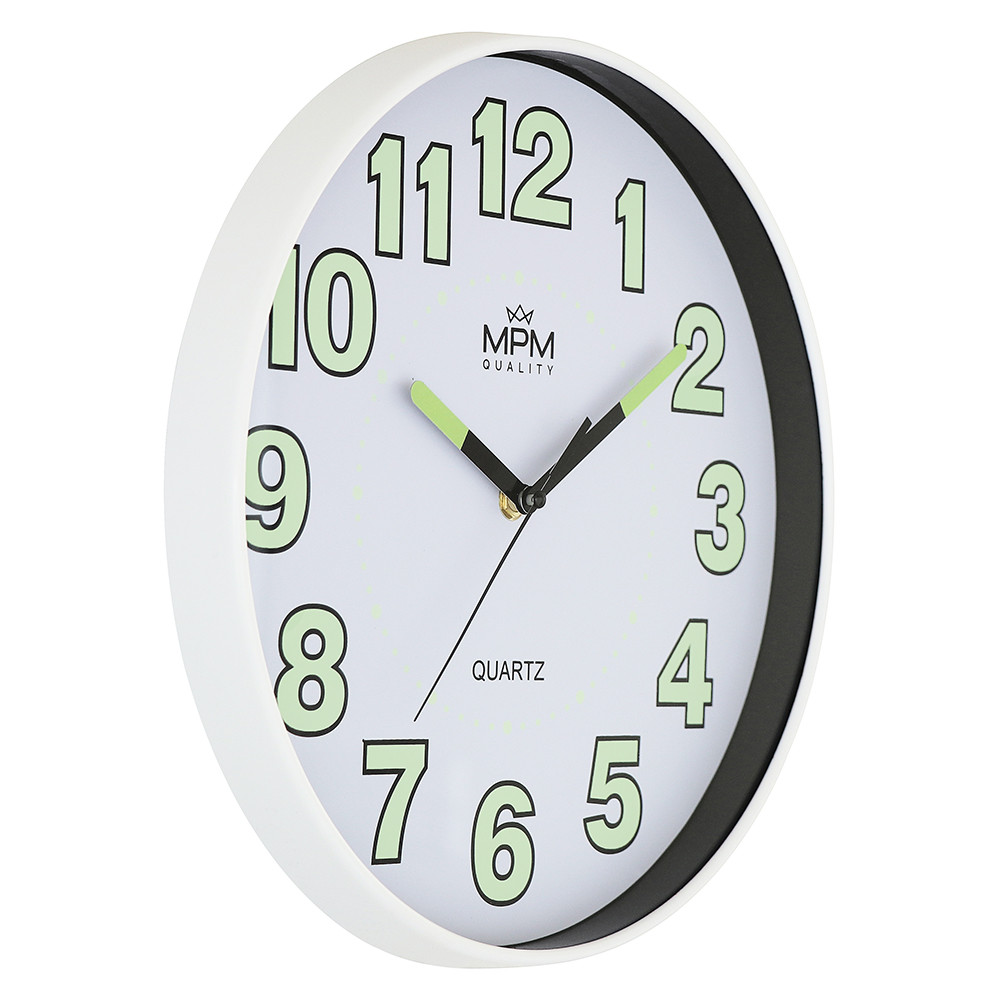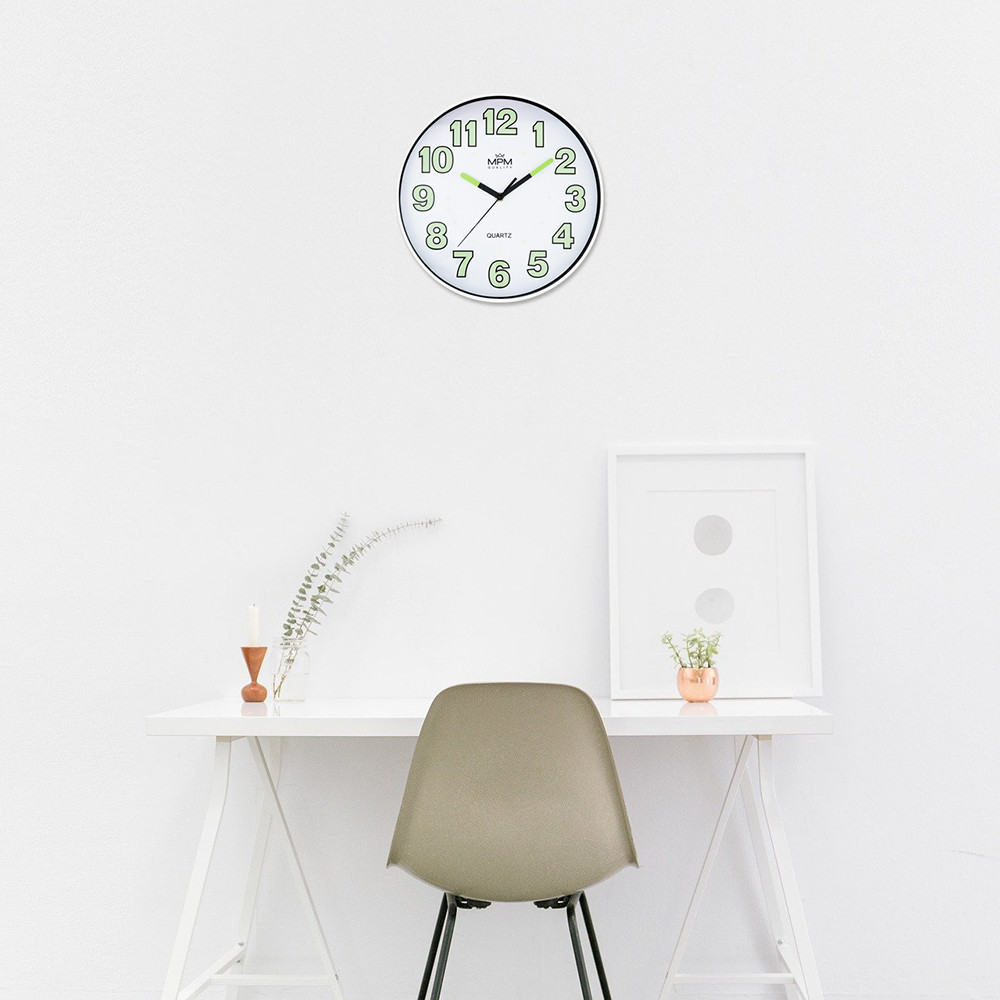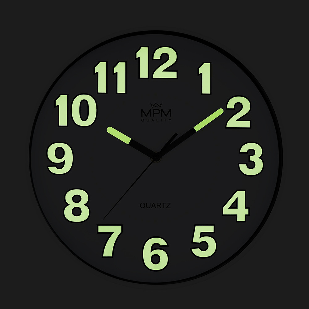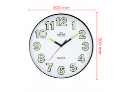 Nástěnné hodiny s luminiscenčními čísly a ručičkami. Designové nástěnné hodiny s prvky luminisence.