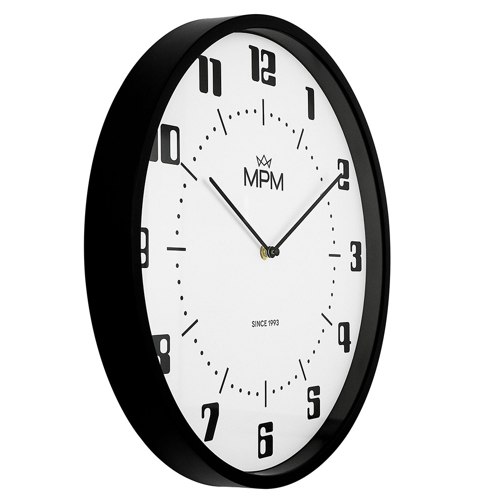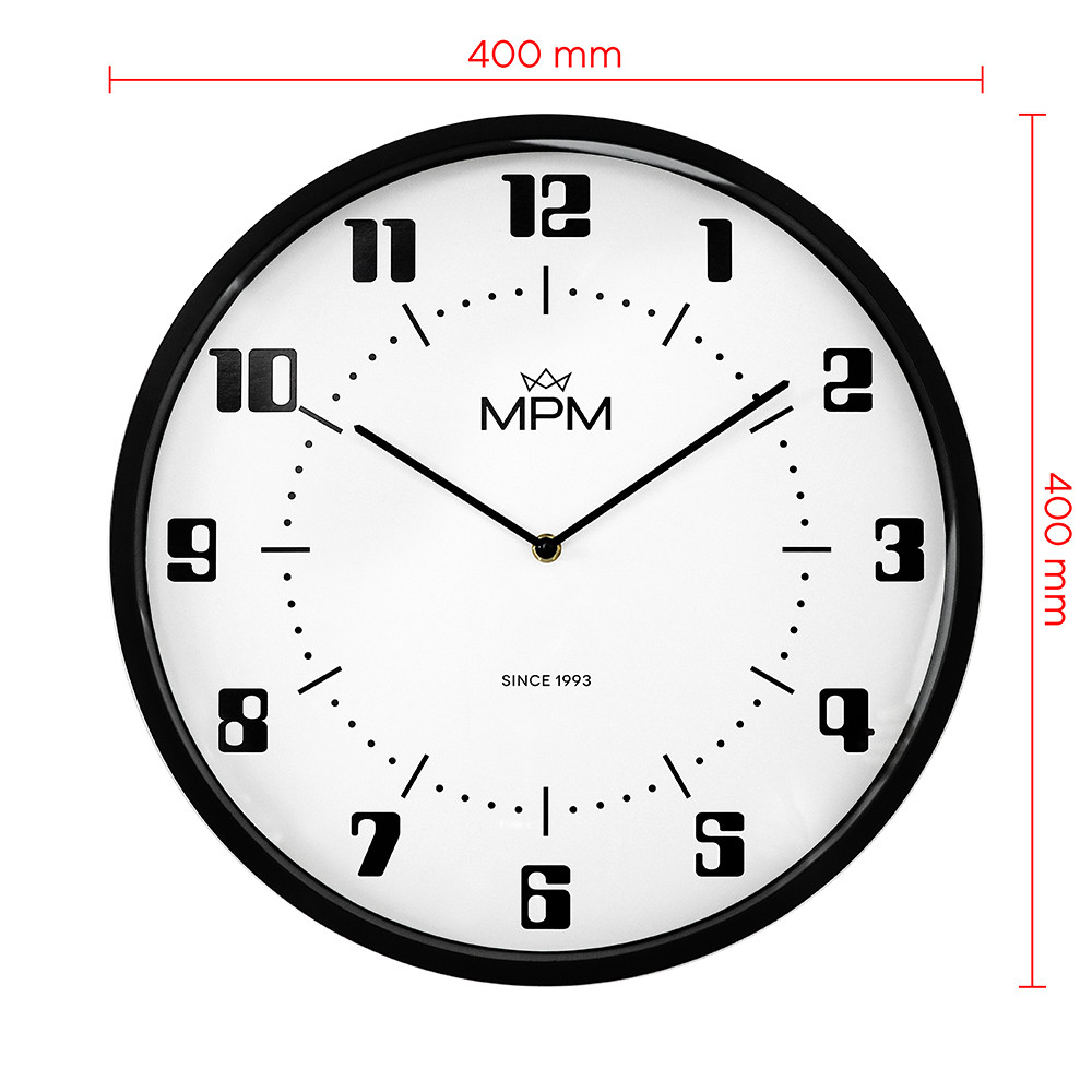 Nástěnné plastové hodiny MPM Retro Since 1993 ve velikosti ∅ 400 mm. S čitelným ciferníkem ve stylovém retro stylu. Hodiny jsou vybaveny strojkem Quartz s plynulým chodem.