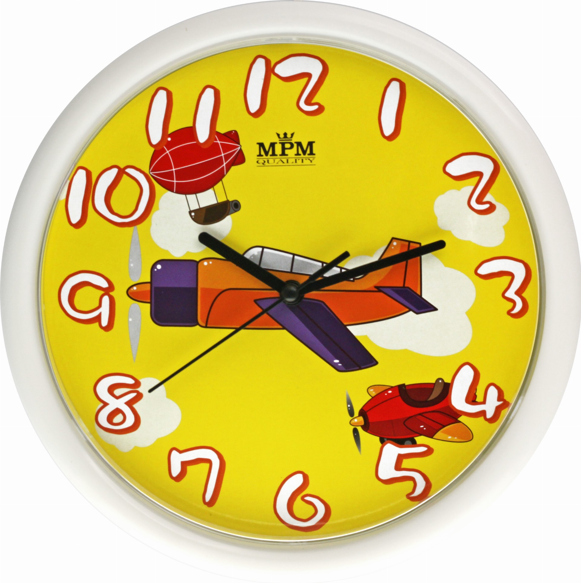 Designové plastové hodiny bílé/žluté MPM Fine - B
