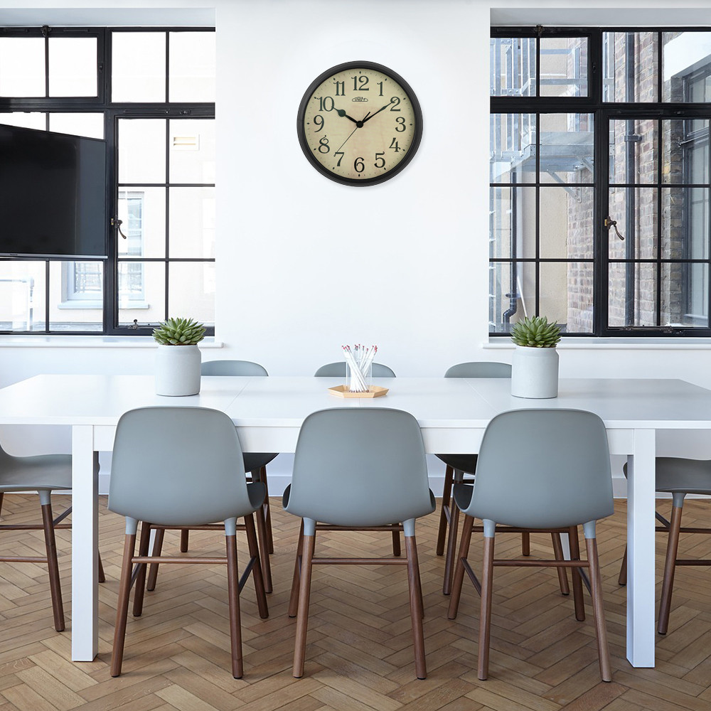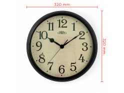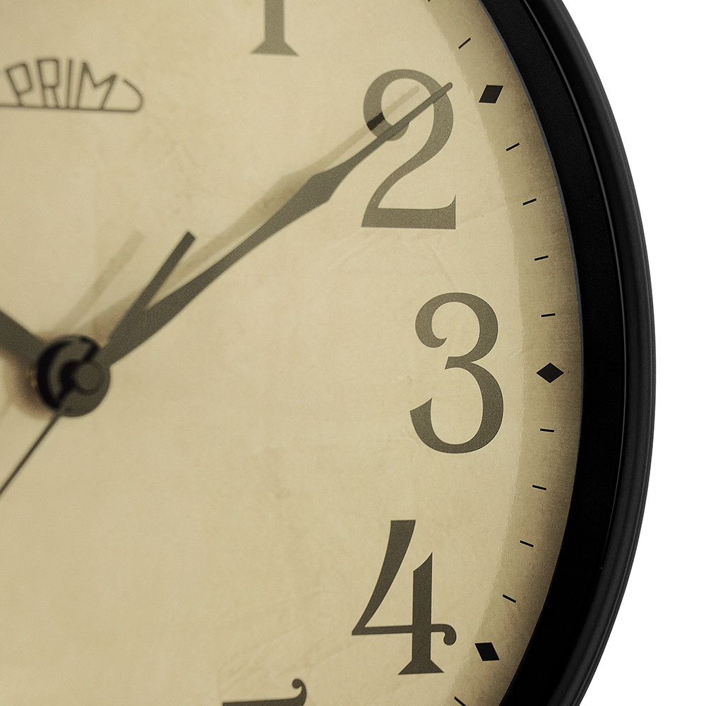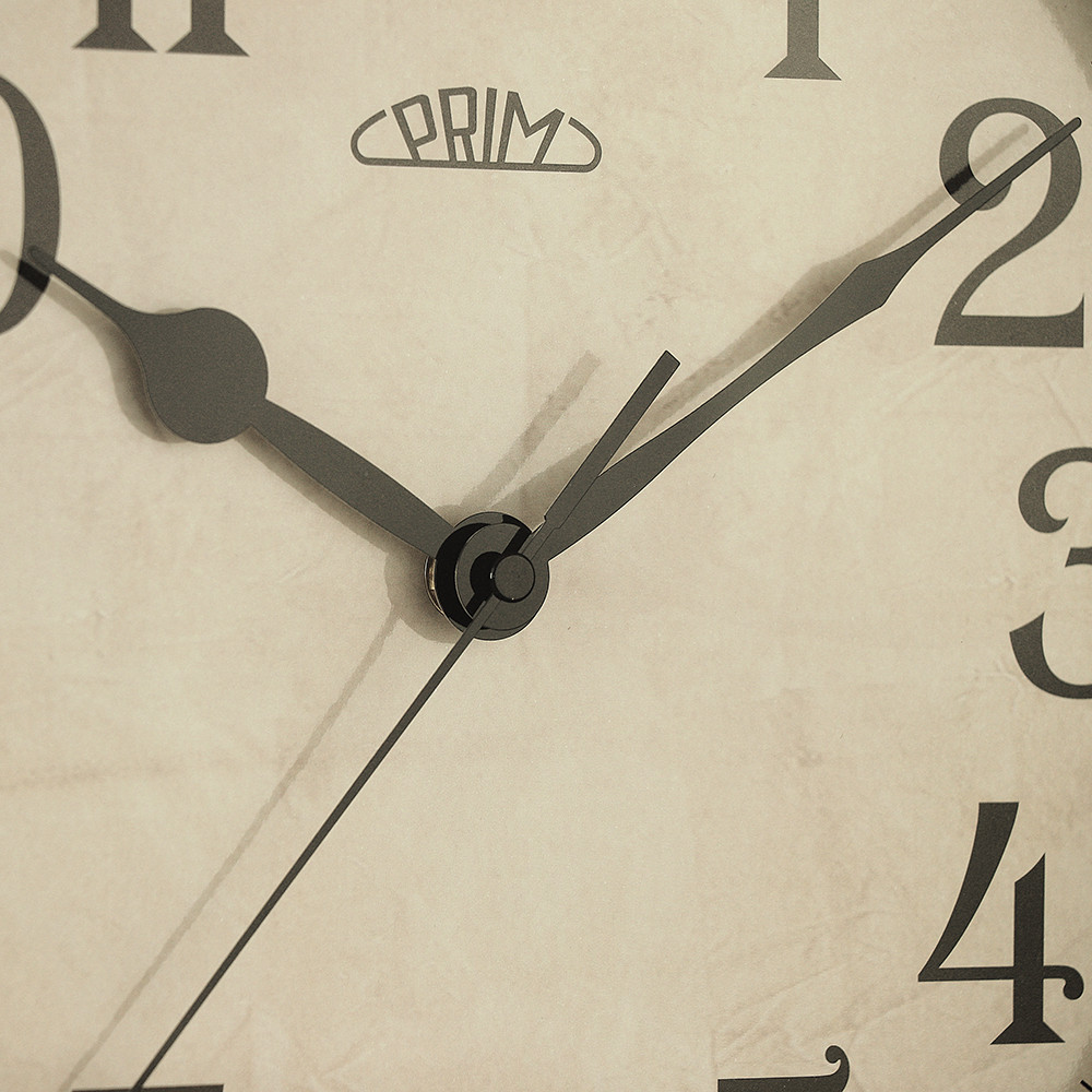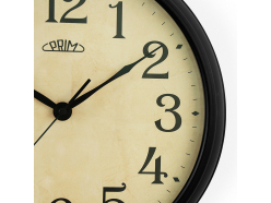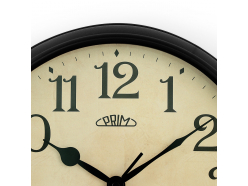 Nástěnné plastové hodiny PRIM Historic s patinovým vzorem číselníku a s elegantními retro číslicemi. Ani indexy a ručičky neunikly tomuto velmi oblíbenému designu. Uspokojí především každého, kdo má rád kousky s historickým vzhledem.
