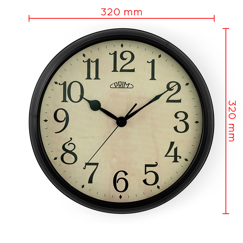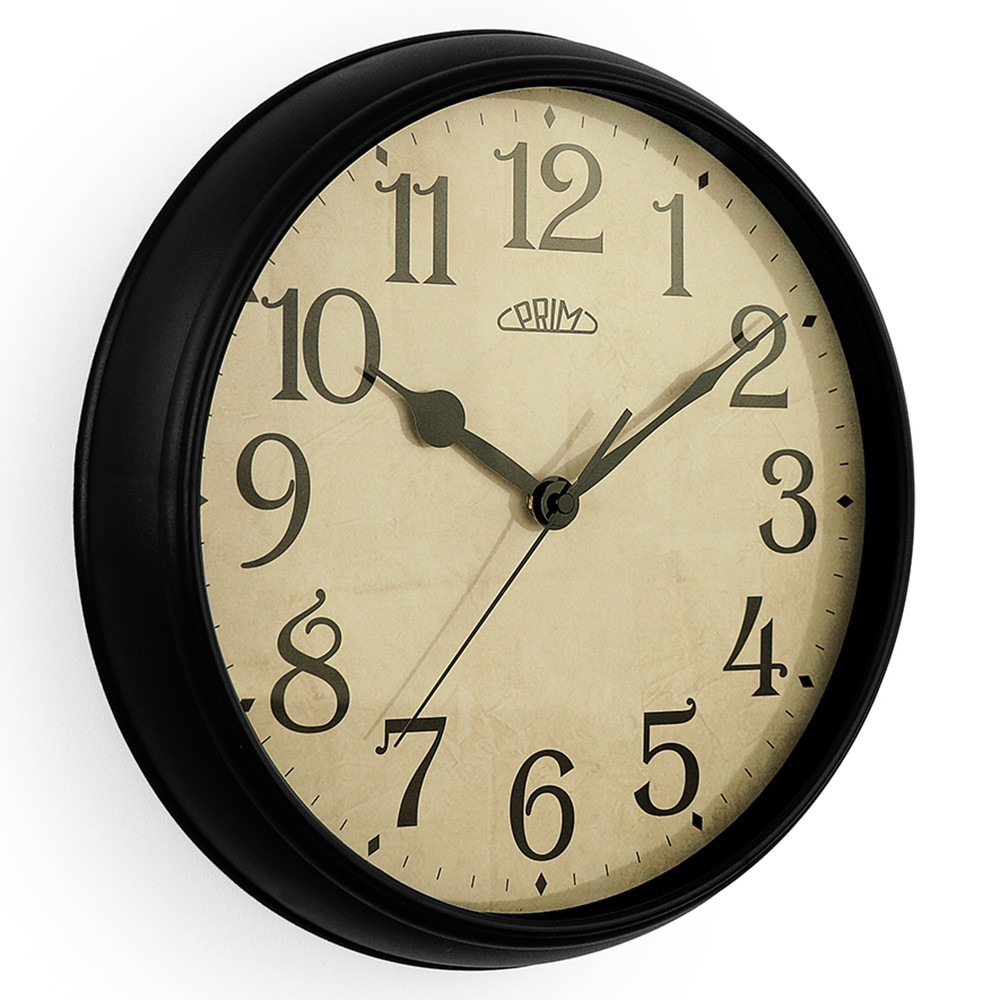 Designové plastové hodiny černé Nástěnné hodiny PRIM Historic - B – II. jakost