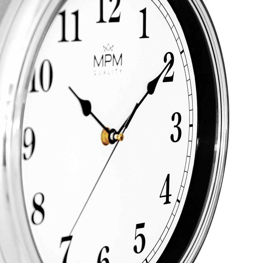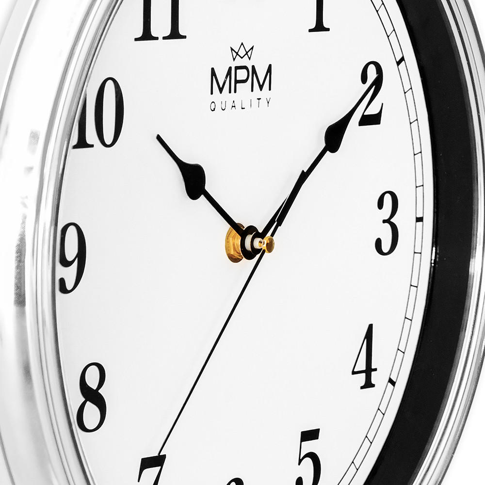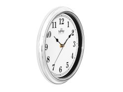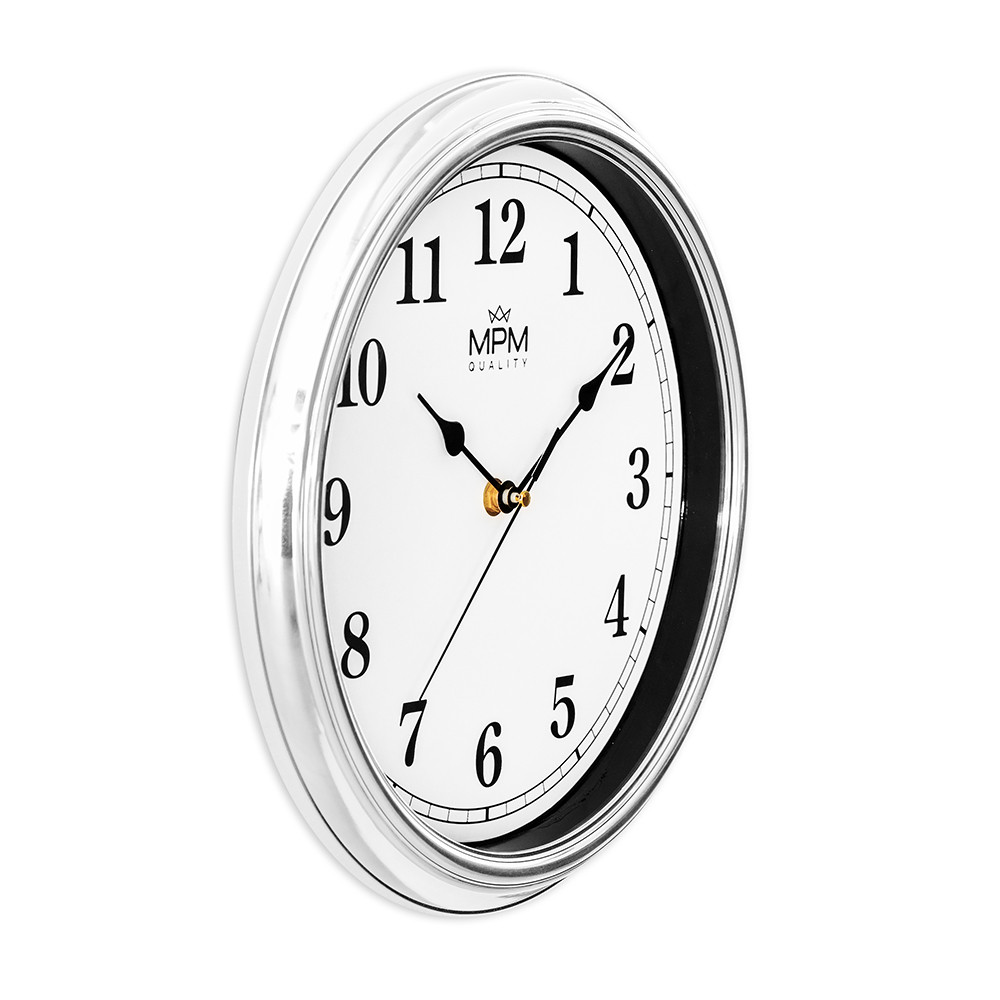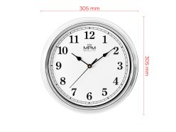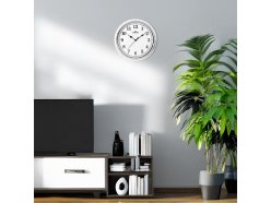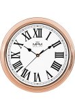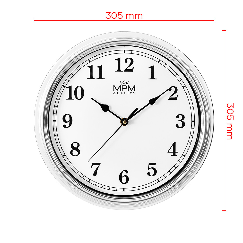 Kulaté plastové nástěnné hodiny o průměru 305 mm. Tento model s klasickými píkovými ručičkami, sekundovou ručičkou a hodinovým strojkem s plynulým chodem nabízíme ve dvou variantách – stříbrné s arabskými a růžově zlacené s římskými číslicemi.