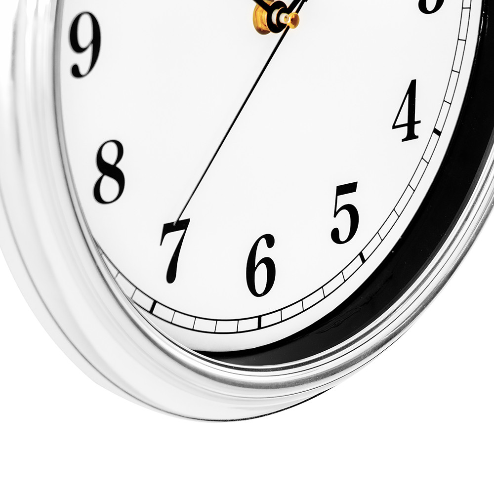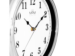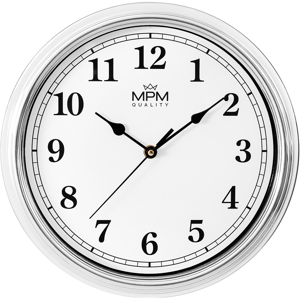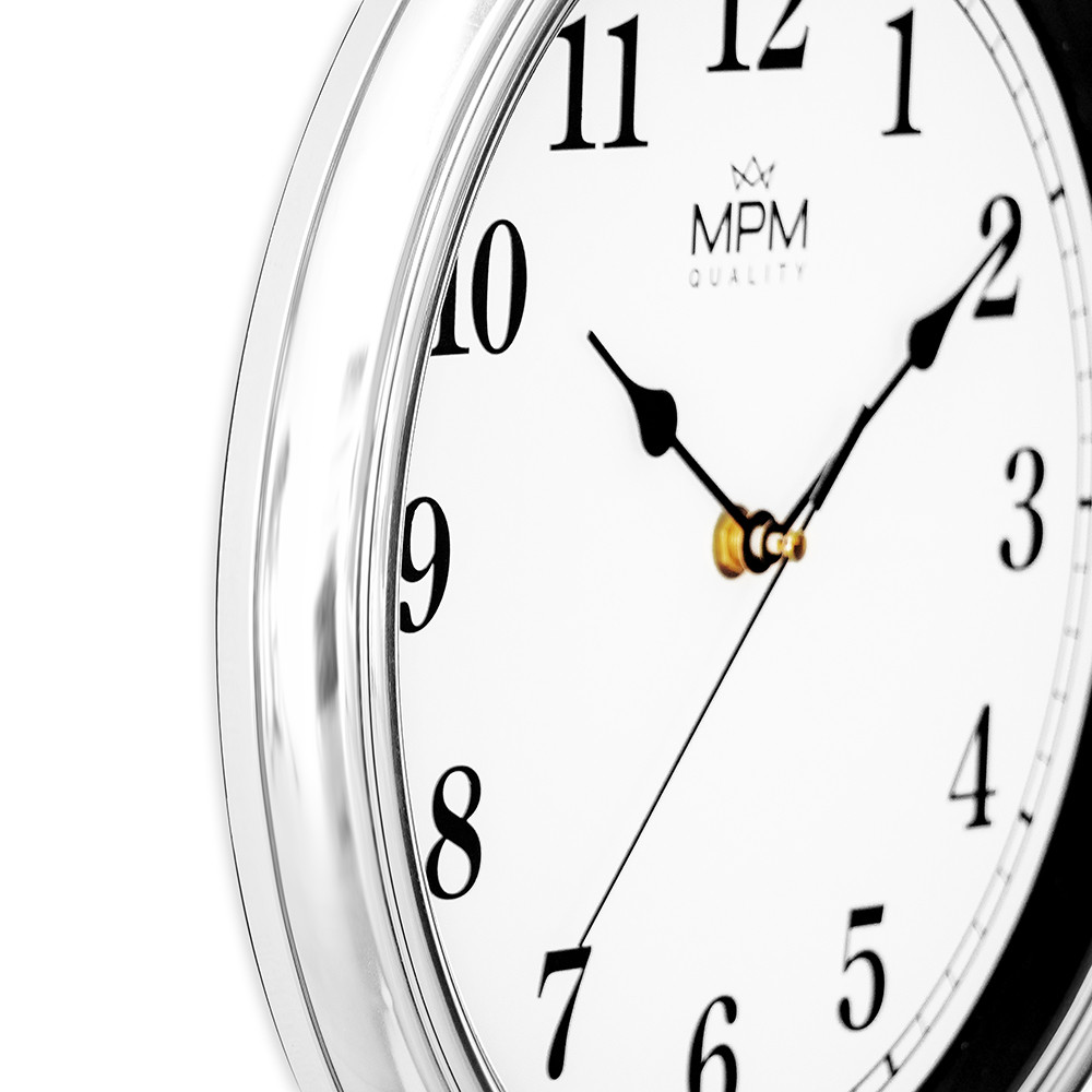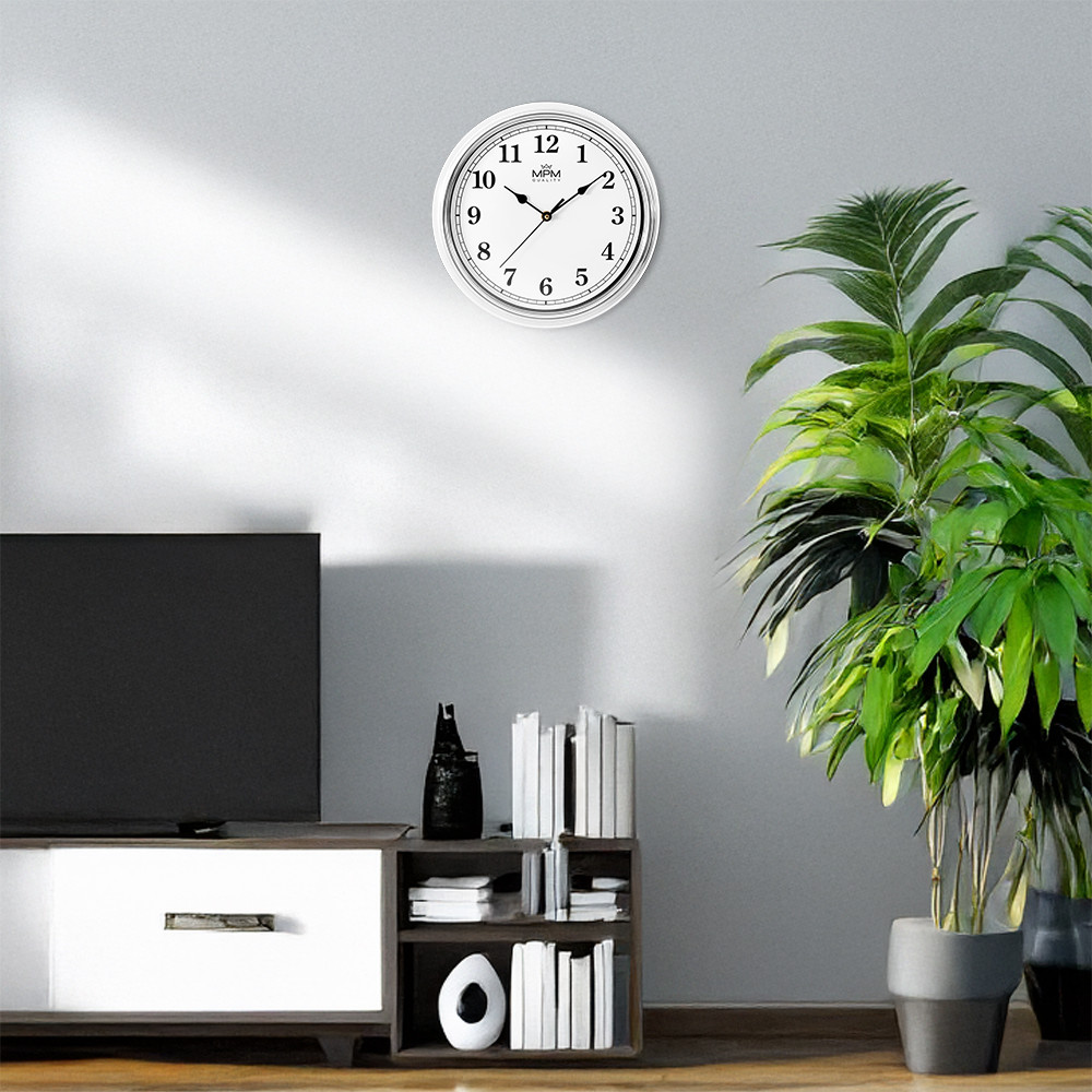 Kulaté plastové nástěnné hodiny o průměru 305 mm. Tento model s klasickými píkovými ručičkami, sekundovou ručičkou a hodinovým strojkem s plynulým chodem nabízíme ve dvou variantách – stříbrné s arabskými a růžově zlacené s římskými číslicemi.