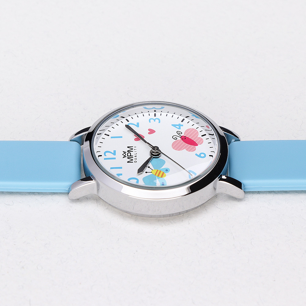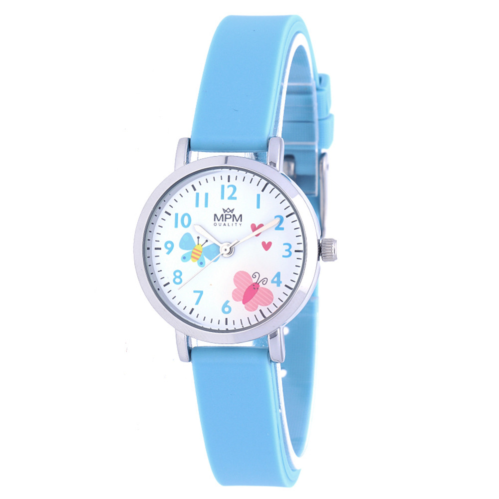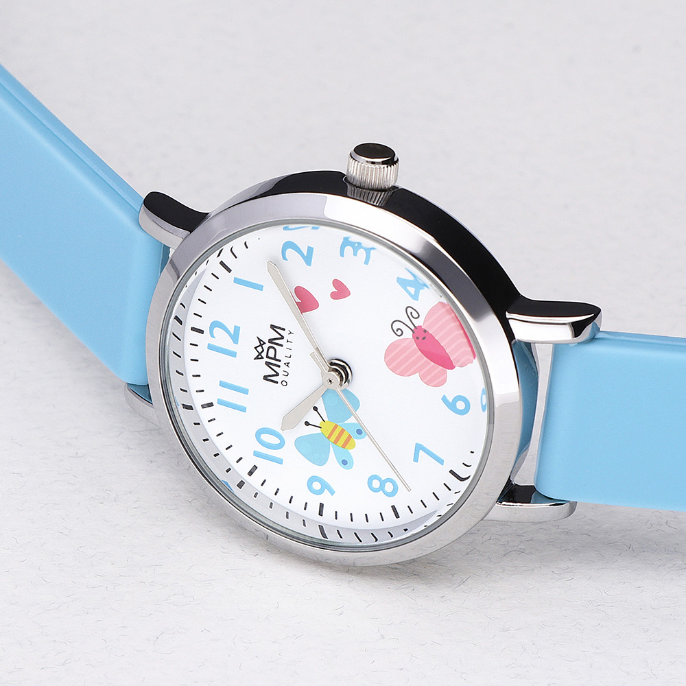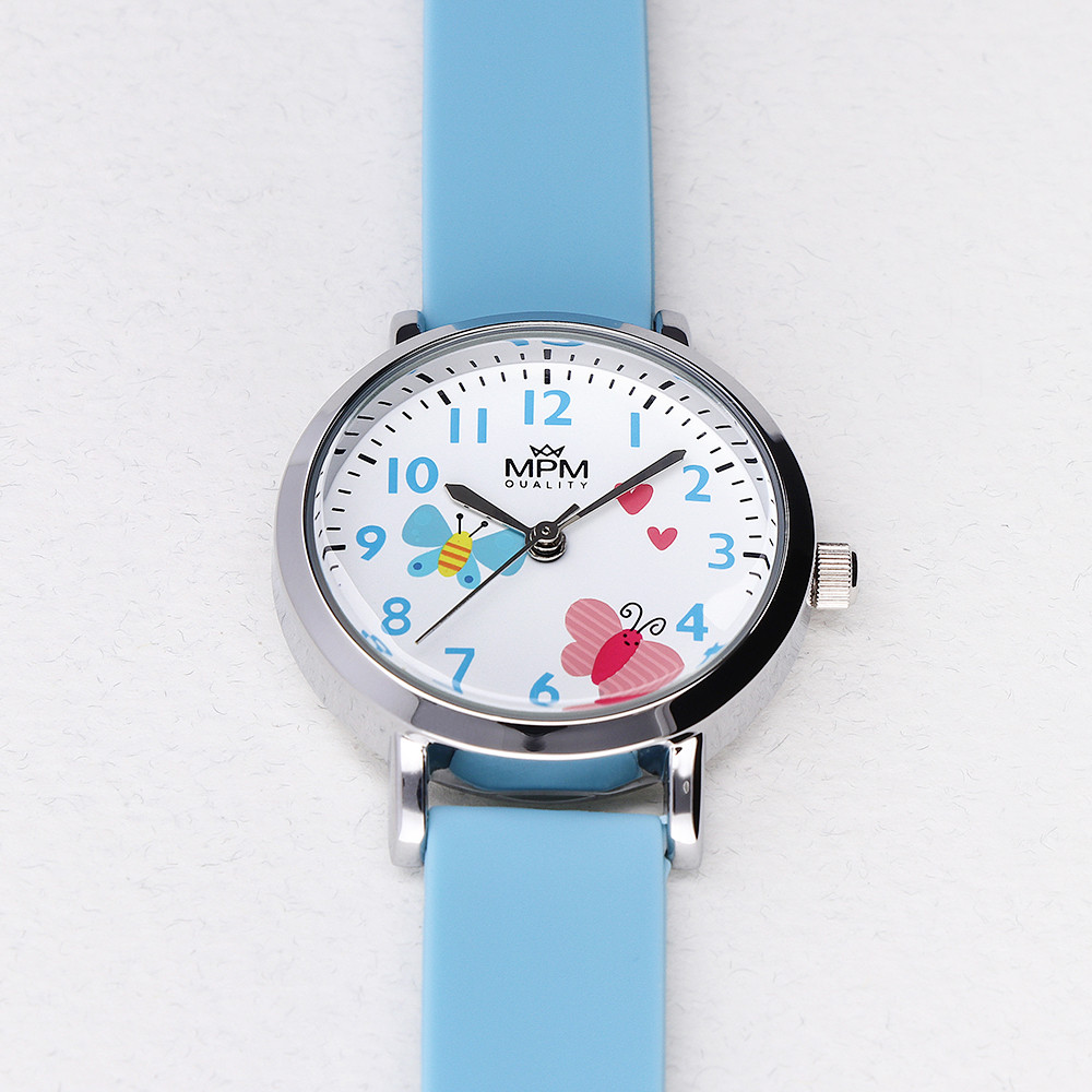 Dětské hodinky MPM Butterfly Love - A - kovové pouzdro - bílý/světle modrý číselník