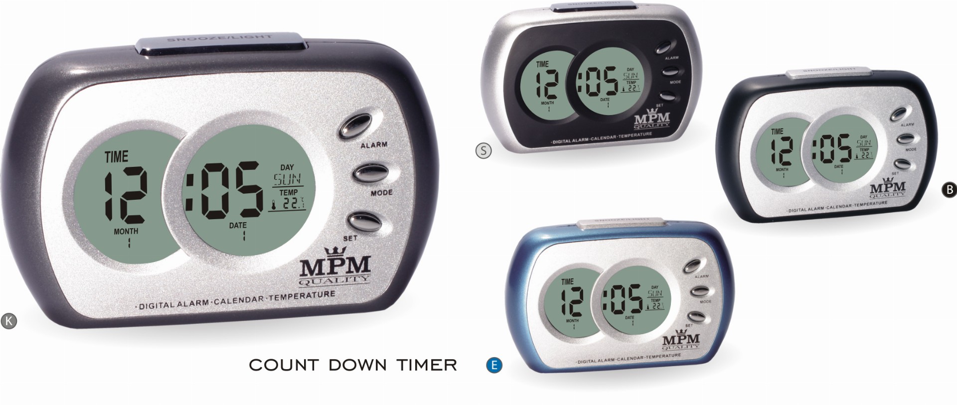Digitální budík plastový stříbrný/černý MPM C02.2745.9070