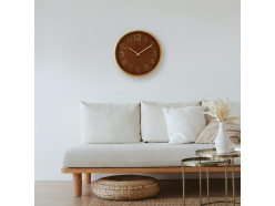 Nástěnné hodiny PRIM Organic Soft v dřevěném pouzdře s vnitřní částí z jemného koberečku, který má v sobě netradičně vyražené číslice. Hodiny se skvěle hodí nejen do ložnice či pracovny, ale především pro ty, co mají rádi kombinaci tkanin a přírodních materiálů. Díky plynulému chodu těchto uklidňujících hodin můžete nerušeně pracovat nebo odpočívat.