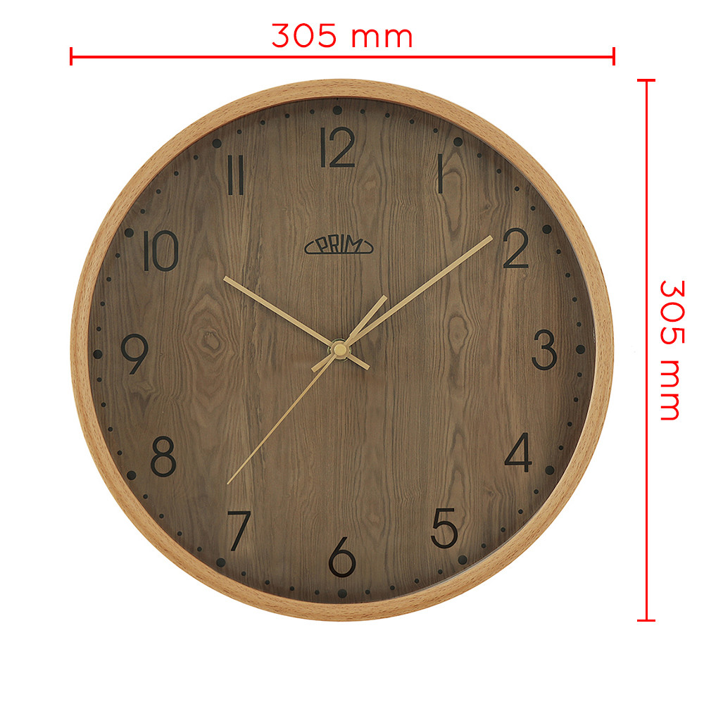 Nástěnné hodiny PRIM Colored Forest uspokojí každého, kdo má rád jednoduchý design a přírodní materiály. Název této kolekce "PRIM Colored Forest" napovídá, že tyto hodiny mají rám vyroben z příjemného dřevěného materiálu. Hodiny se také mohou pyšnit barevností dřevěného rámu. Baterie 1xAA není součástí balení.