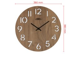 Nástěnné dřevěné hodiny PRIM Authentic Veneer jsou jednoduché hodiny zpracované z kvalitní dřevěné dýhy. Tloušťka dýhy je 4 mm. Barevné varianty 53 a 54 jsou doplněny ručkami také z tohoto přírodního materiálu. U hodin jsou hlavním výrazným prvkem vyražené číslice. Jsou vybaveny quartz strojkem s plynulým chodem. Hodiny vyrobeny v ČR.