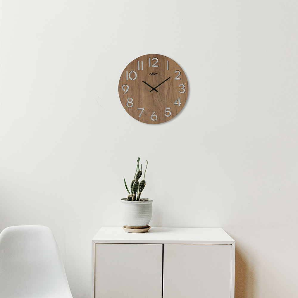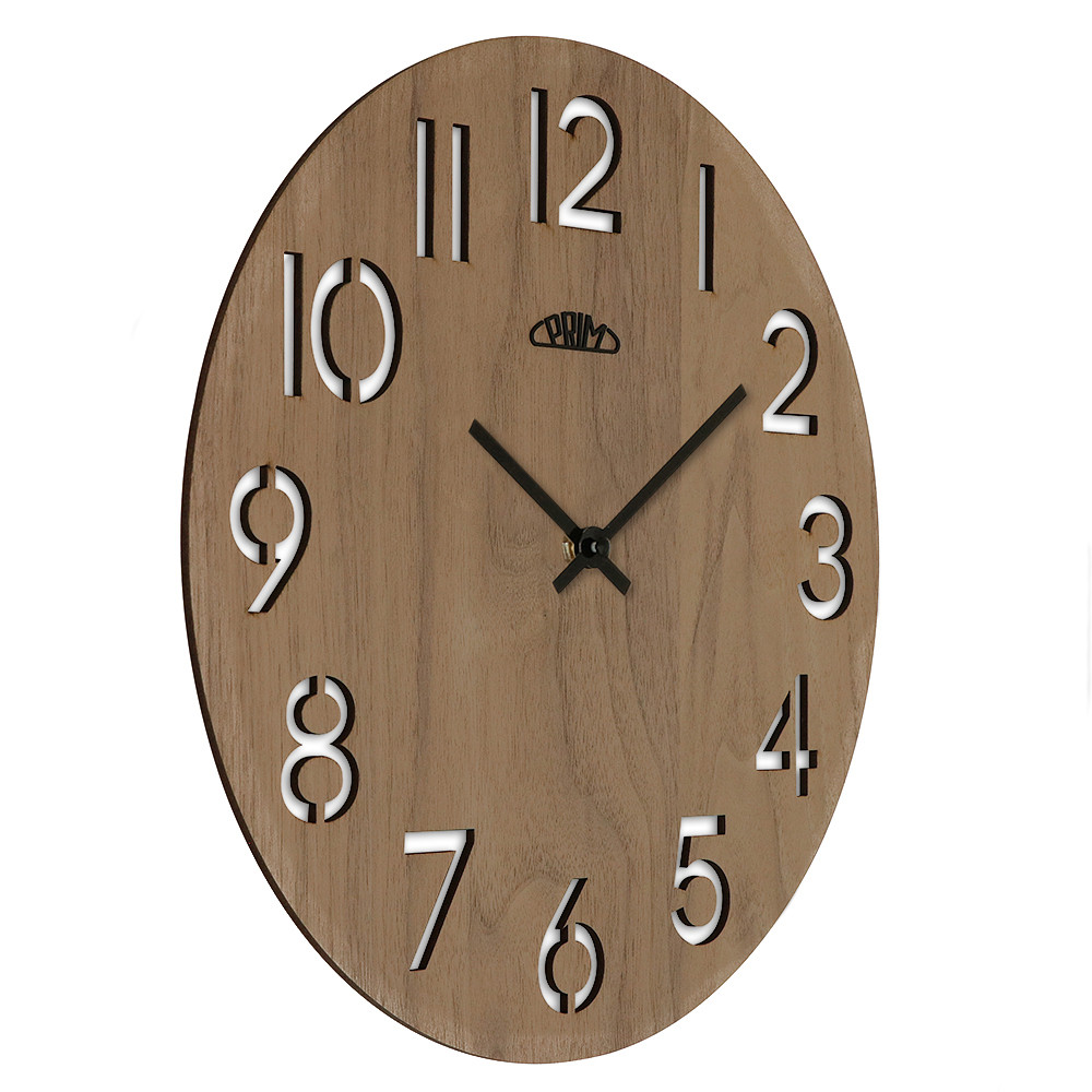 Dřevěné designové hodiny tmavě hnědé PRIM Authentic Veneer - C