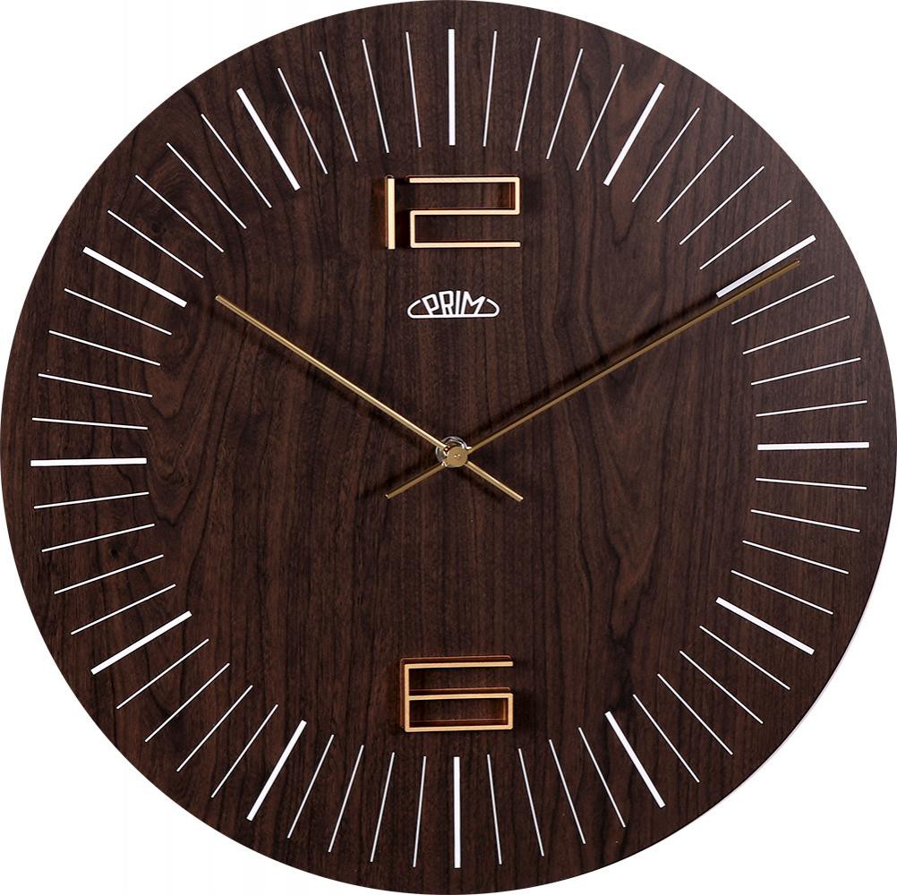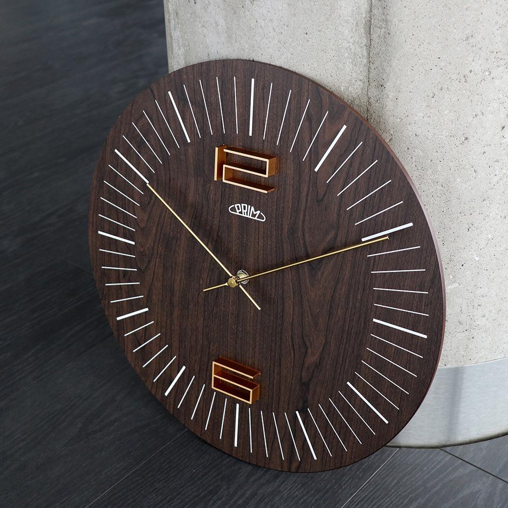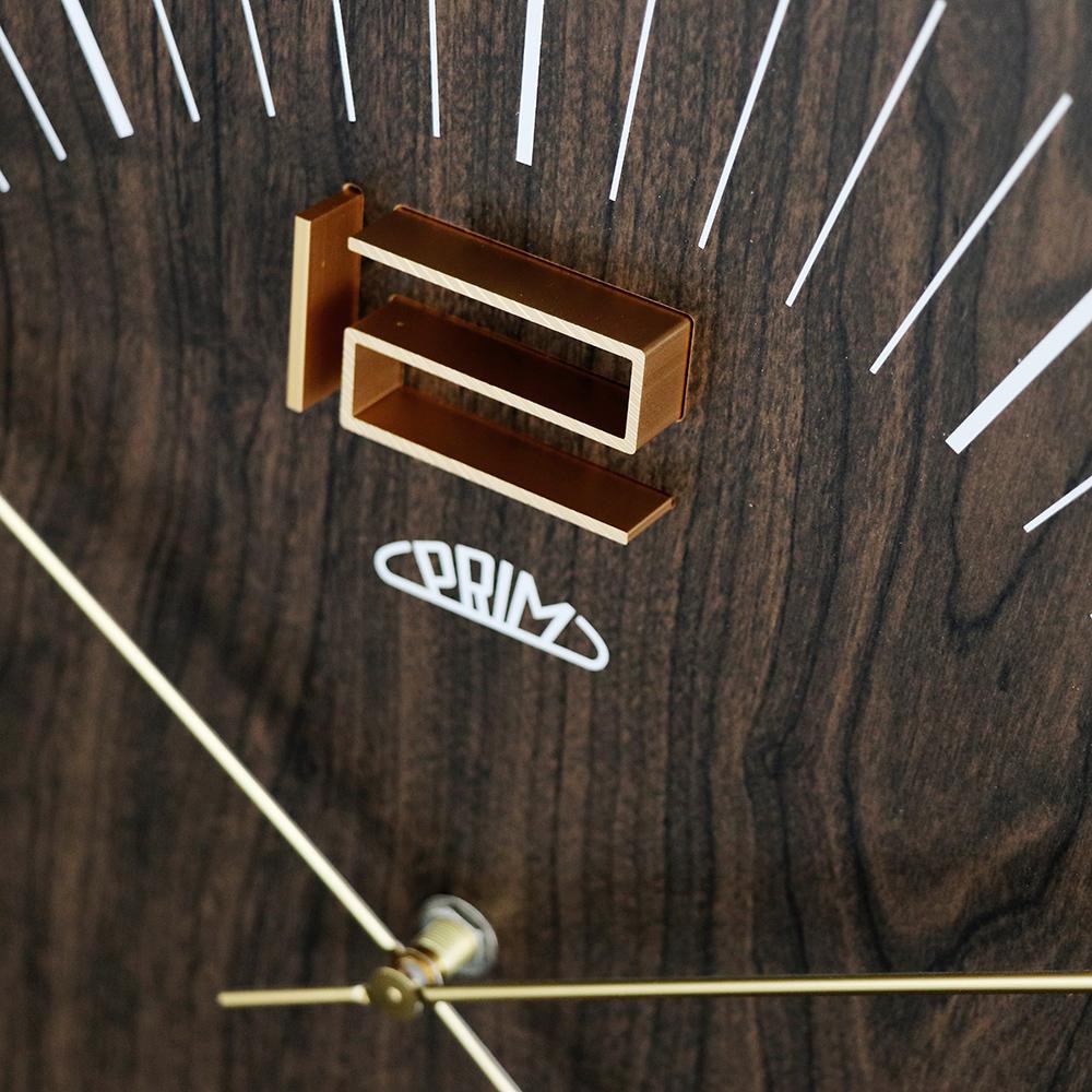 Dřevěné nástěnné hodiny PRIM Wood Thin mají 3D číslice 12 a 6 z kovu. Působí velice čistým, elegantním dojmem.