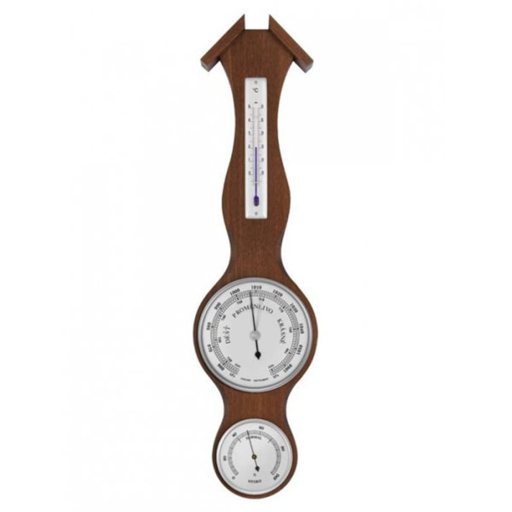 Combined barometer with thermometer and hygrometer suitable for all interiors provides information about the current temperature, pressure, and humidity.