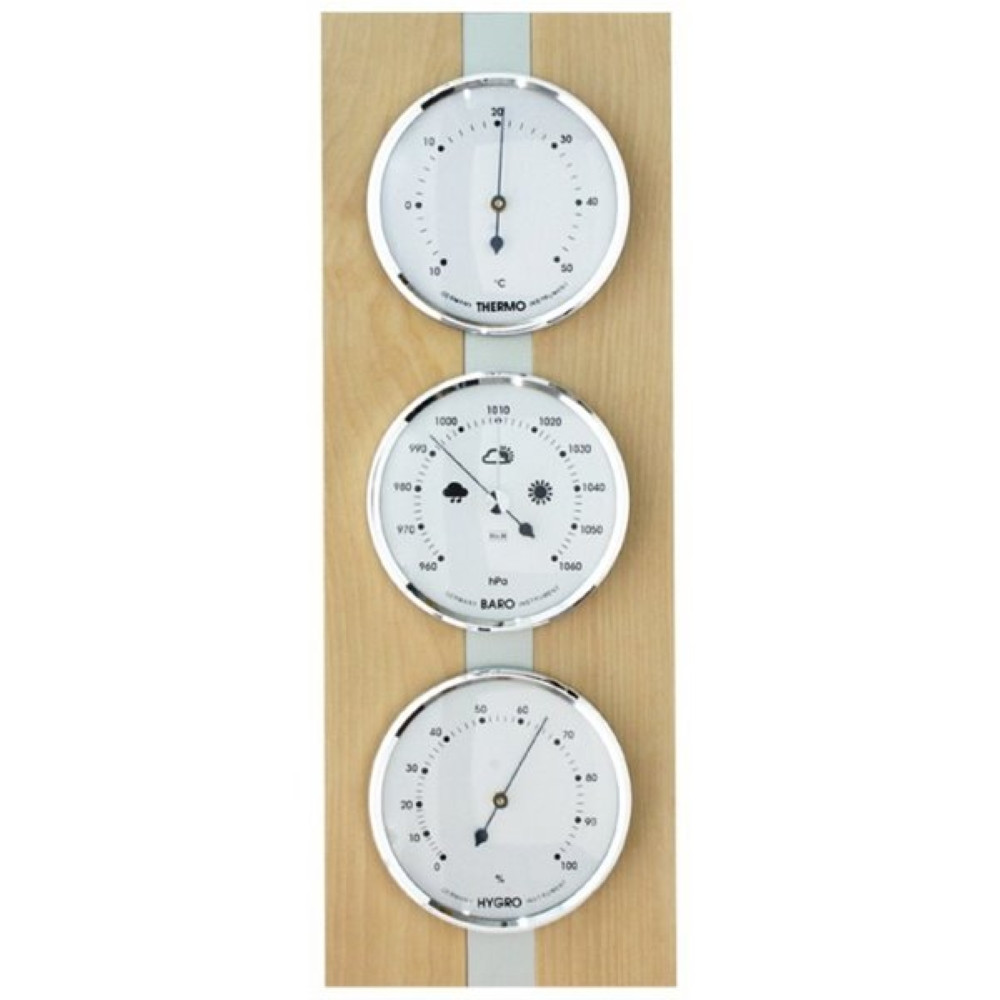 Dřevěný analogový barometr kombinovaný s teploměrem a vlhkoměrem 8063B světlý stříbrný