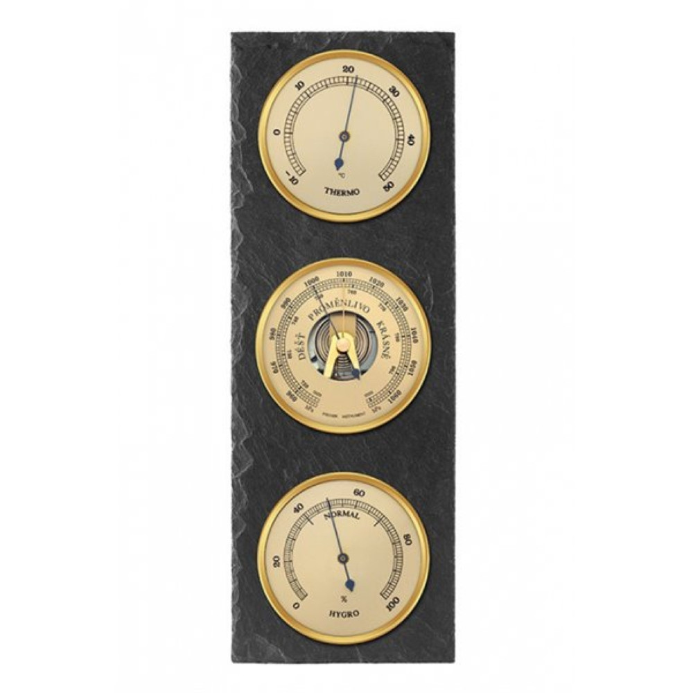 Analogový barometr v břidlici kombinovaný s teploměrem a vlhkoměrem 8081 zlatý