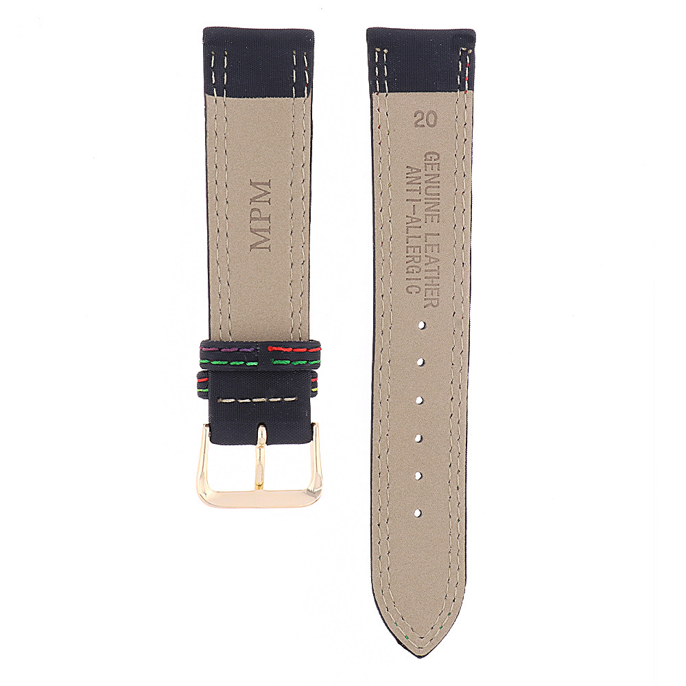 Black leather+textile strap L MPM RF.15203.20.90.L - buckle gilded