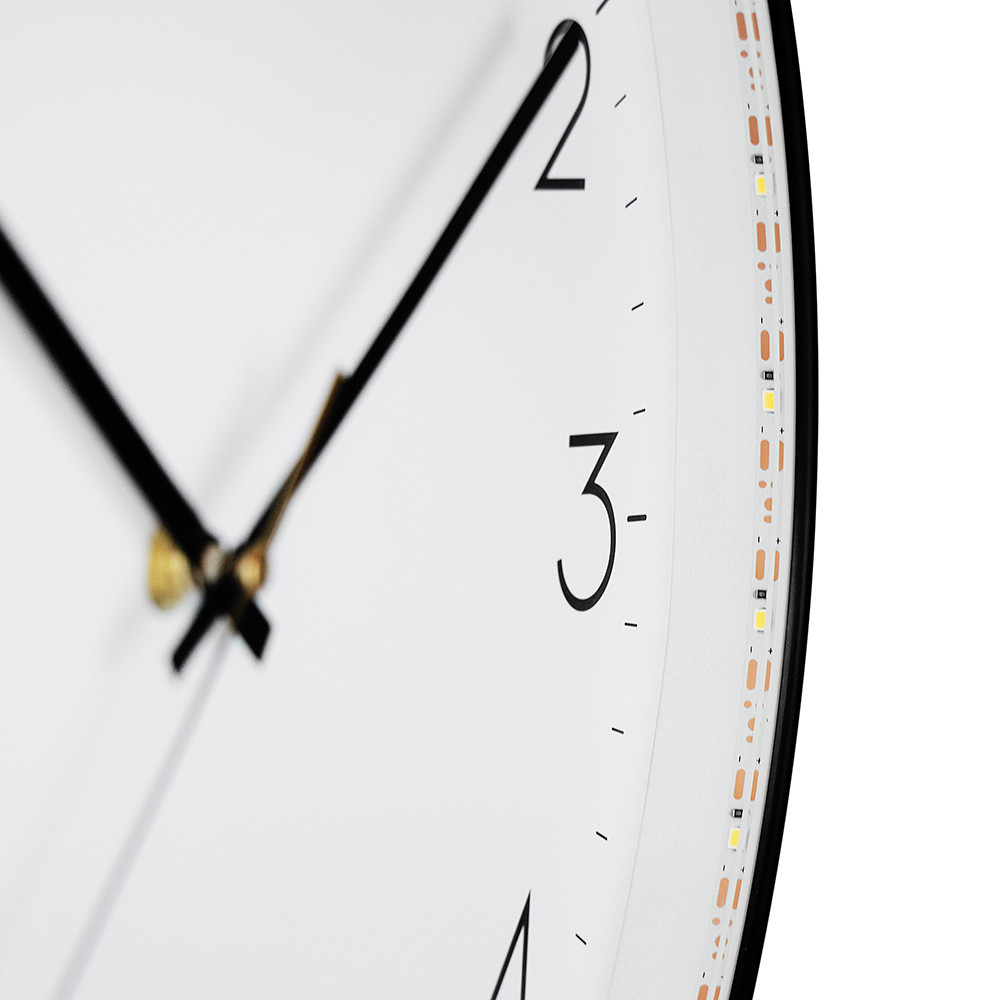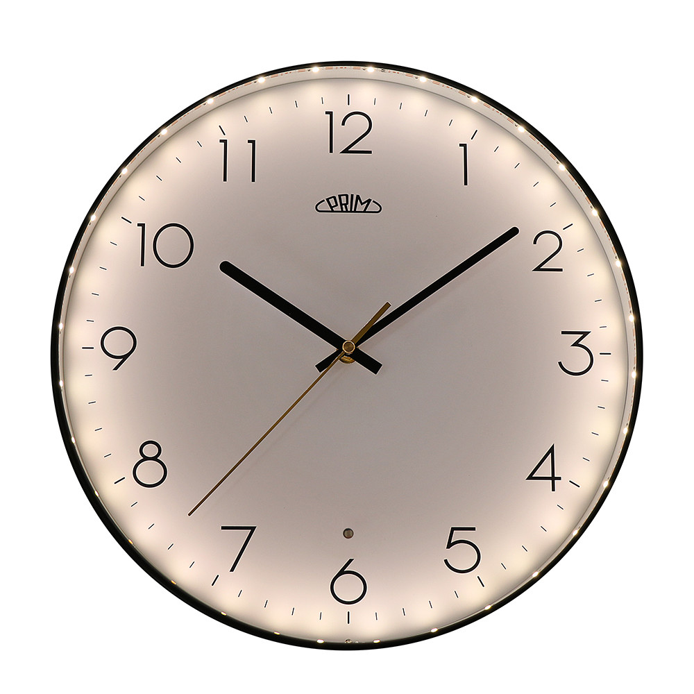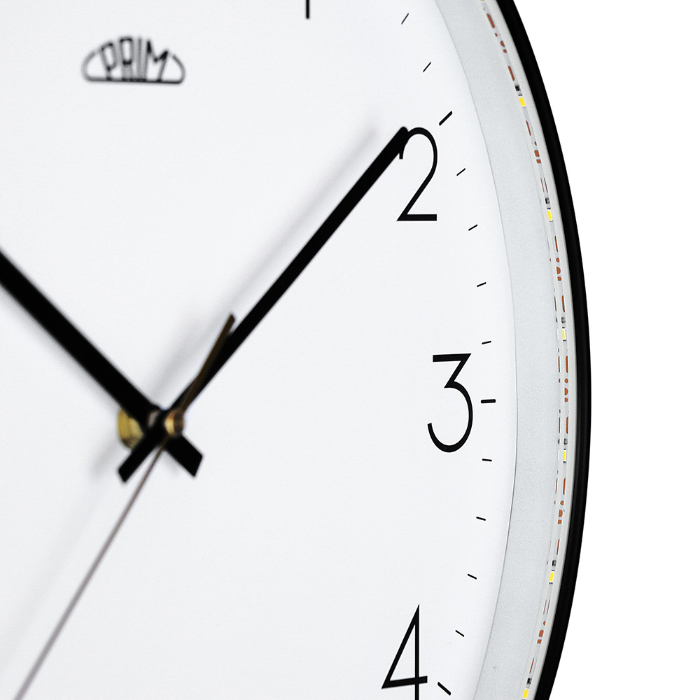 PRIM Sense plastic wall clock with light and sound sensor. The intelligent lighting function of the clock will captivate you. The light sensor allows the clock to be continuously lit when there is a lack of light in the room. In combination with a sound sensor in automatic mode, the lighting turns on for just a few seconds after a sound command is given - for example, clapping. You will soon love using this feature.