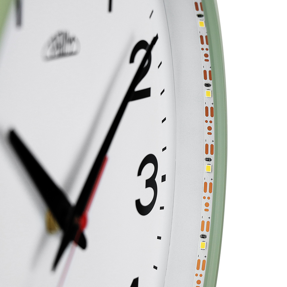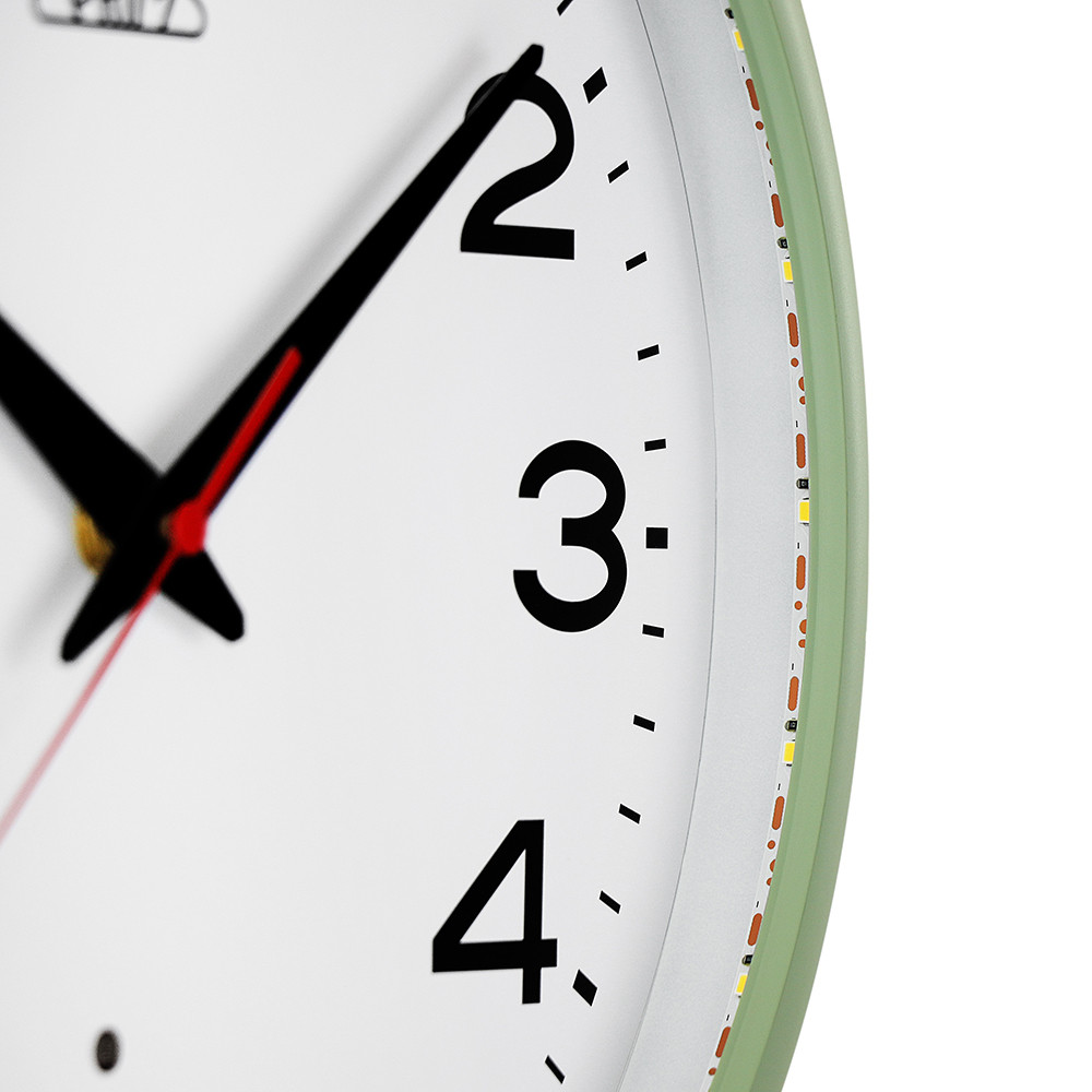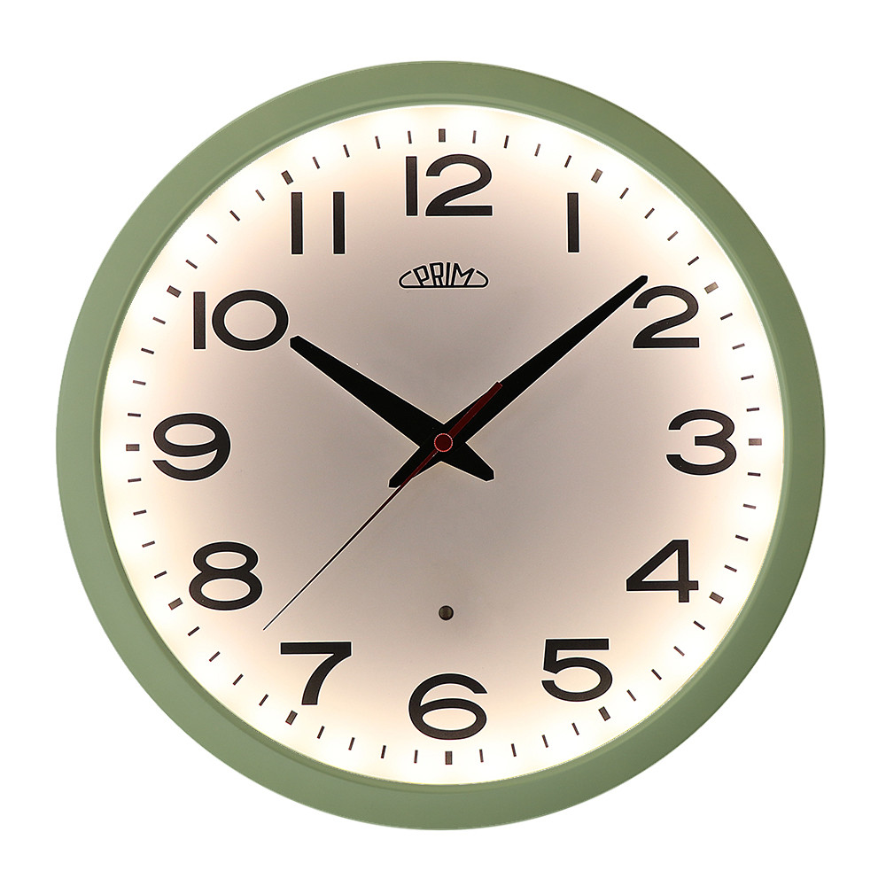PRIM Insight plastic wall clock with light and sound sensor. The intelligent lighting function of the clock will captivate you. The light sensor allows the clock to be continuously lit when there is a lack of light in the room. In combination with a sound sensor in automatic mode, the lighting turns on for just a few seconds after a sound command is given - for example, clapping. You will soon love using this feature.