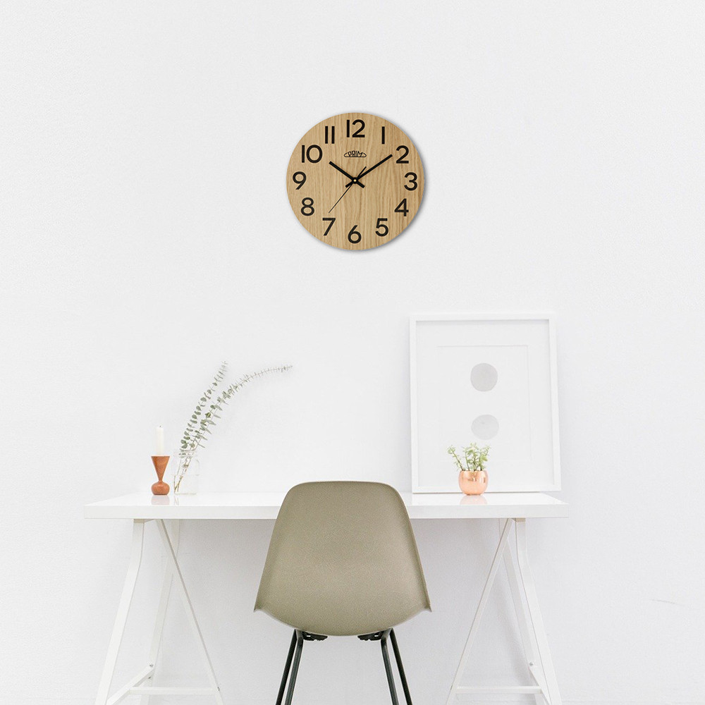 Design wooden wall clock light brown/black PRIM Genuine Veneer - B