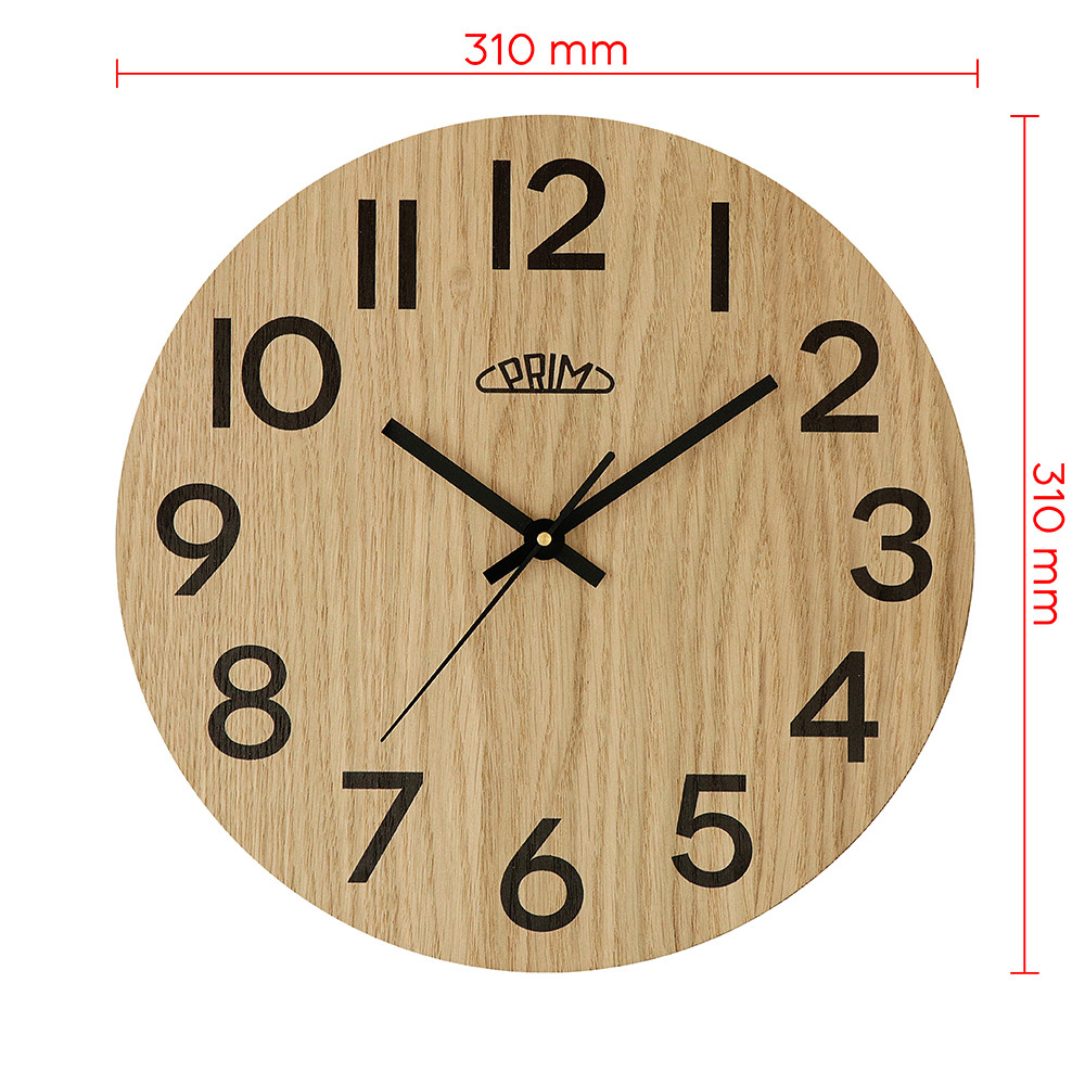 The PRIM Genuine Veneer wall clock is a simple clock made of high-quality wood veneer. The thickness of the veneer is 4 mm. The 5350 colour variant is complemented by clock hands that are also made of this natural material. The numerals and the logo are printed with the popular modern UV printing technology. The clock is equipped with a quartz movement with smooth running and in the case of the 5190 colour variant additionally complemented by a second clock hand. A clock made in the Czech Republic.