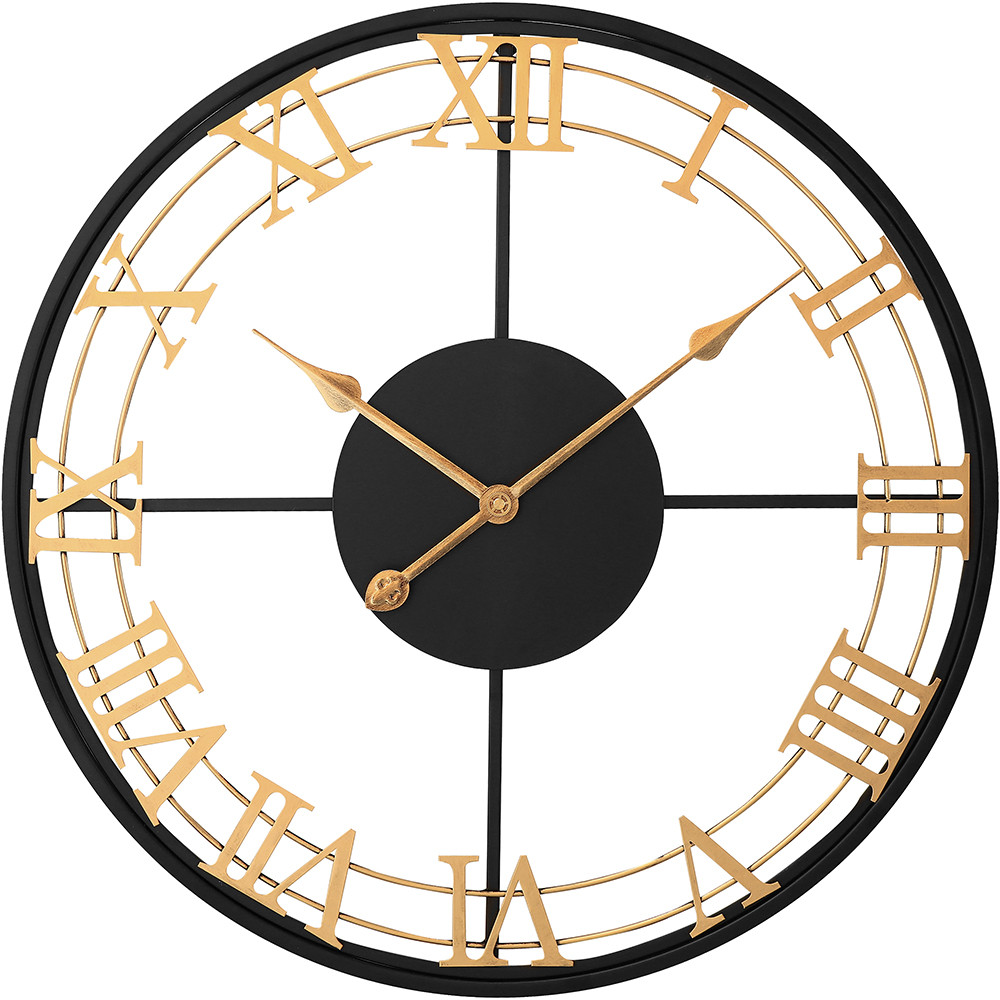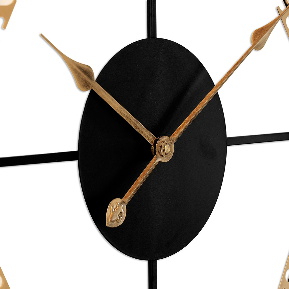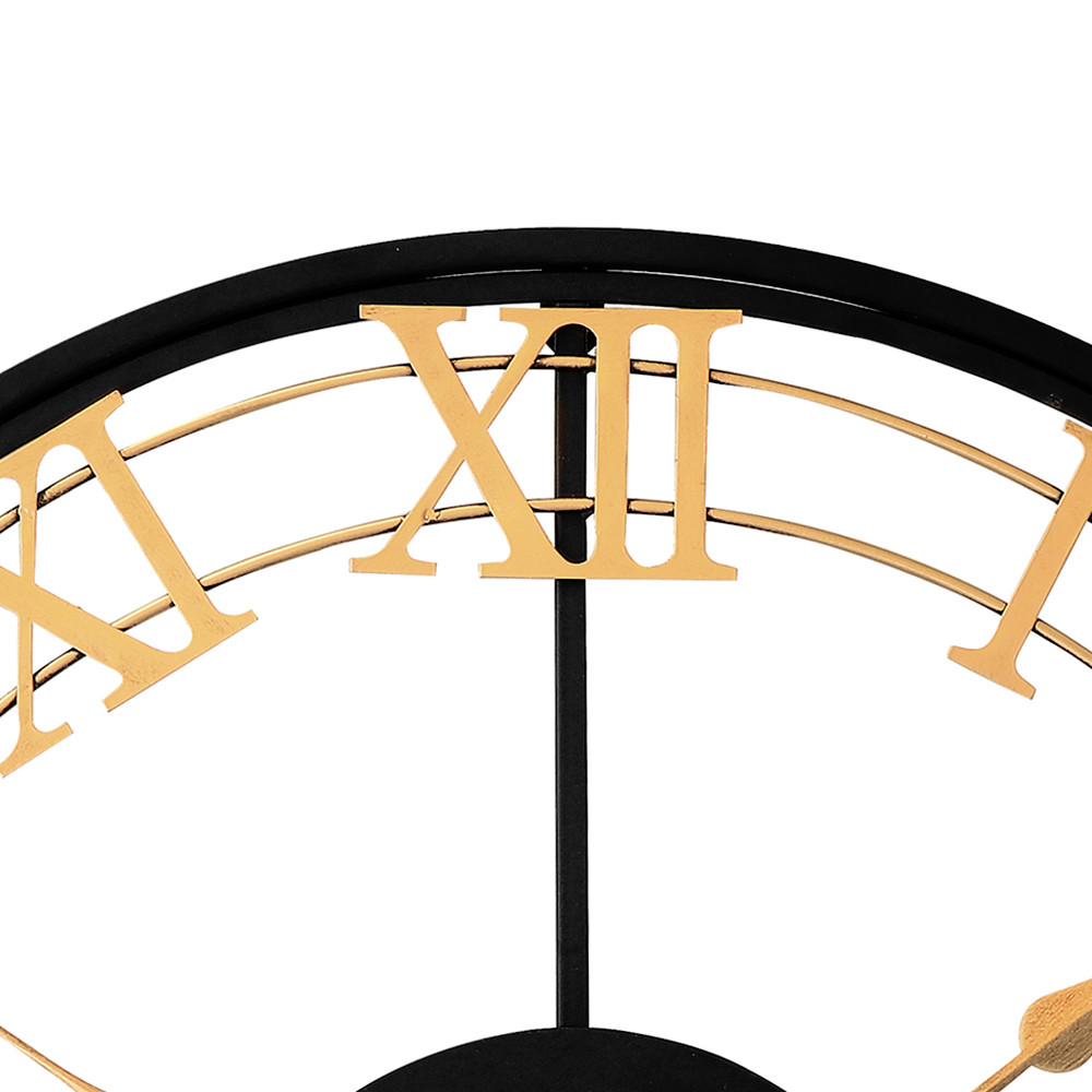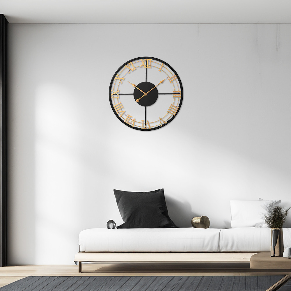 The design metal clock with a diameter of 60 cm in antique style catches the eye at first glance. The combination of gold and black in this clock will perfectly enliven the interior and bring a fresh touch of elegance to it.
