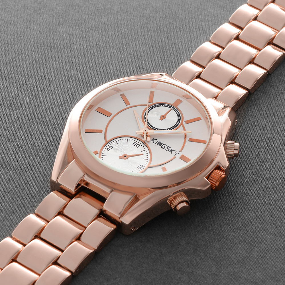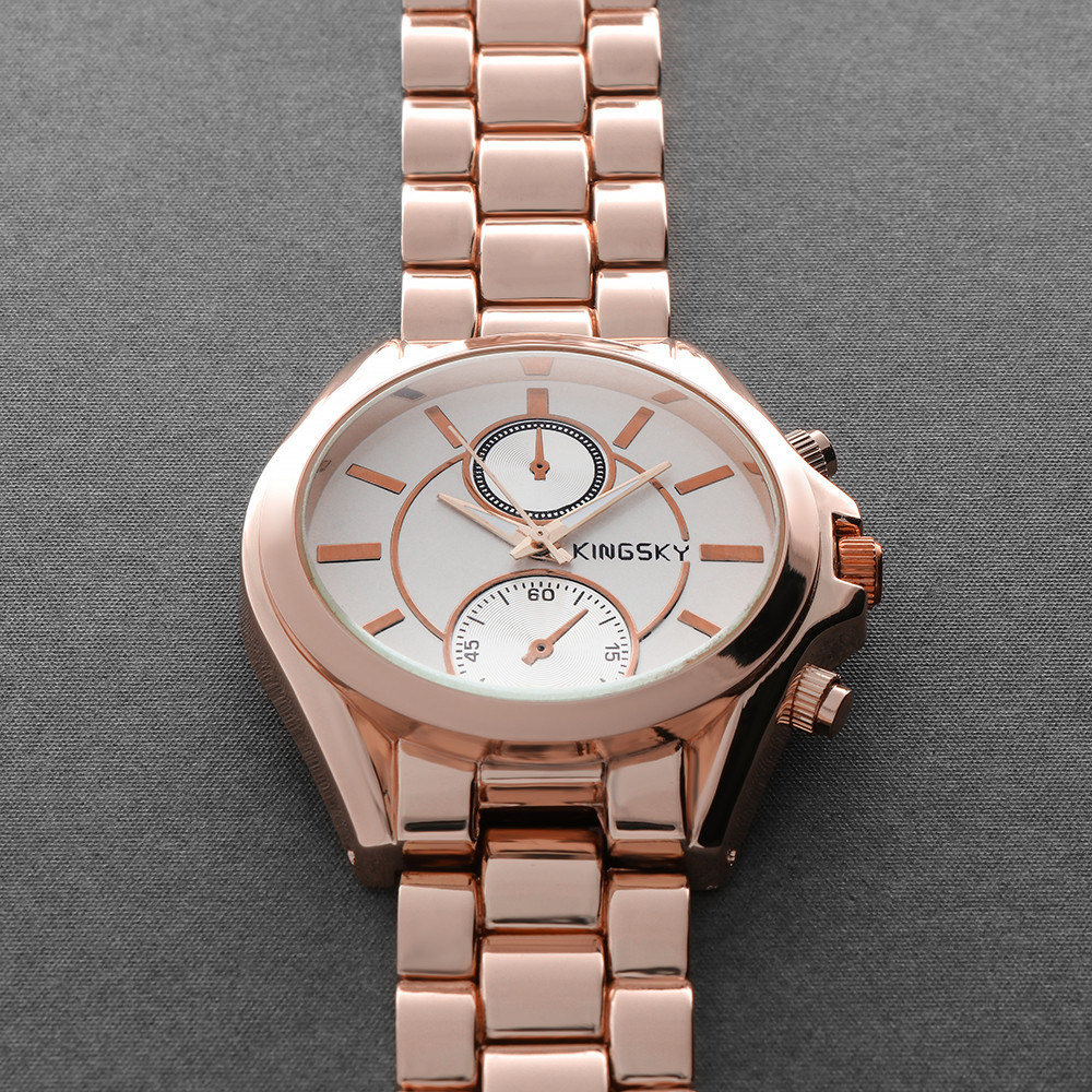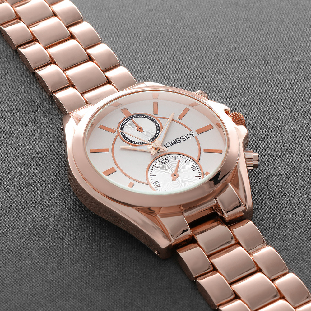 Women fashion watch KINGSKY KINGSKY Logan - F - alloy rose gold case - white/pink dial