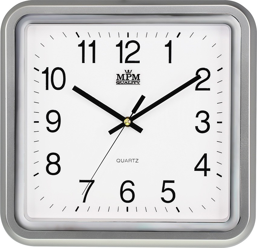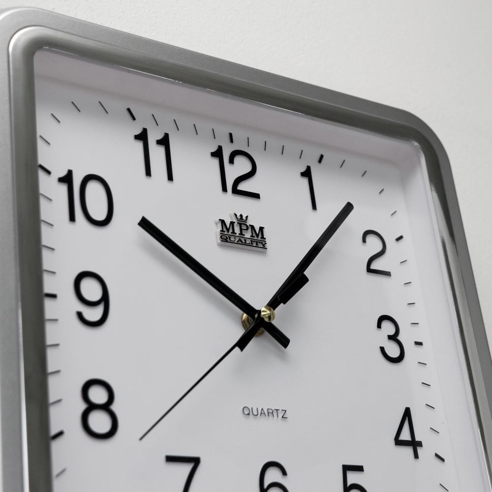 Rectangular plastic wall clock silver MPM Elpen - B