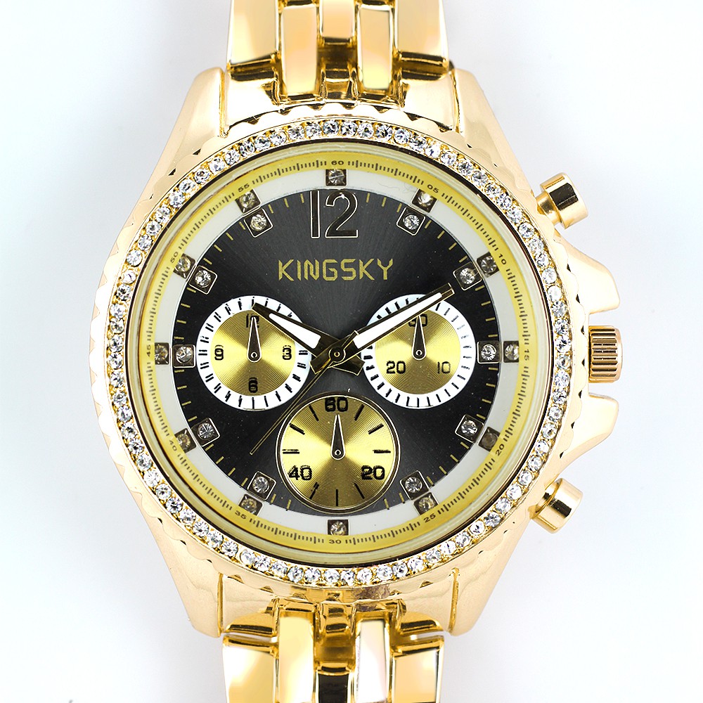 Women fashion watch KINGSKY W03J.10524.C - alloy gold case - black/gold dial