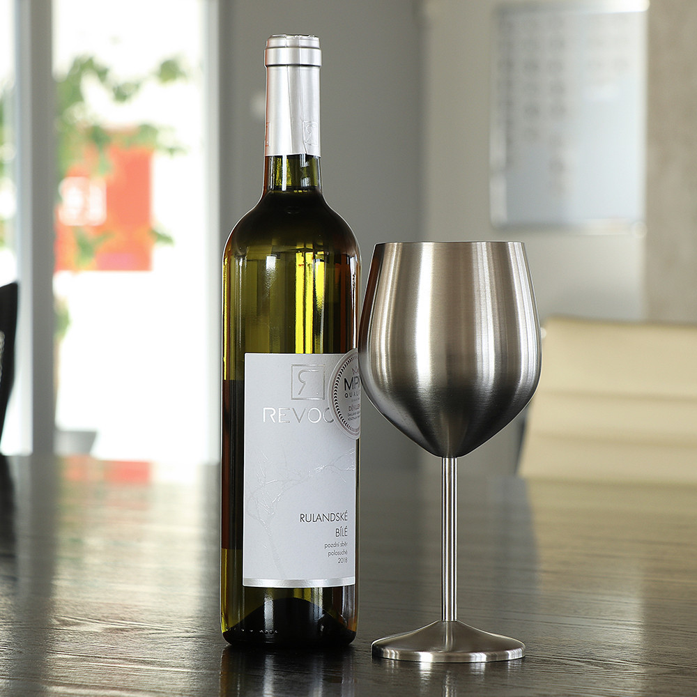 Nerezová sklenice na víno o objemu 400 ml. Populární styl sklenic "Moet".