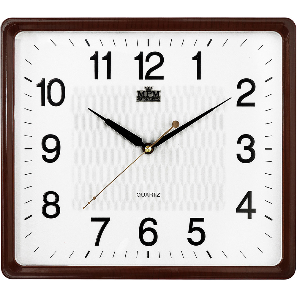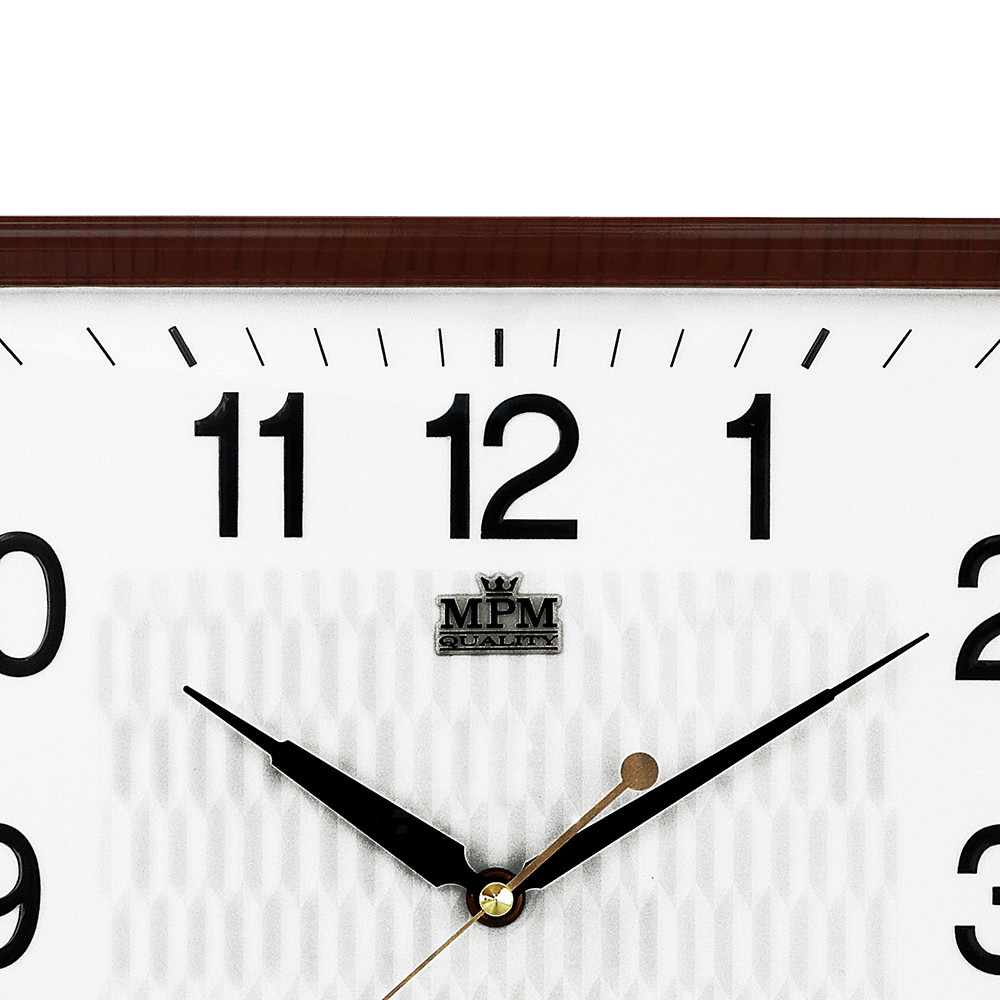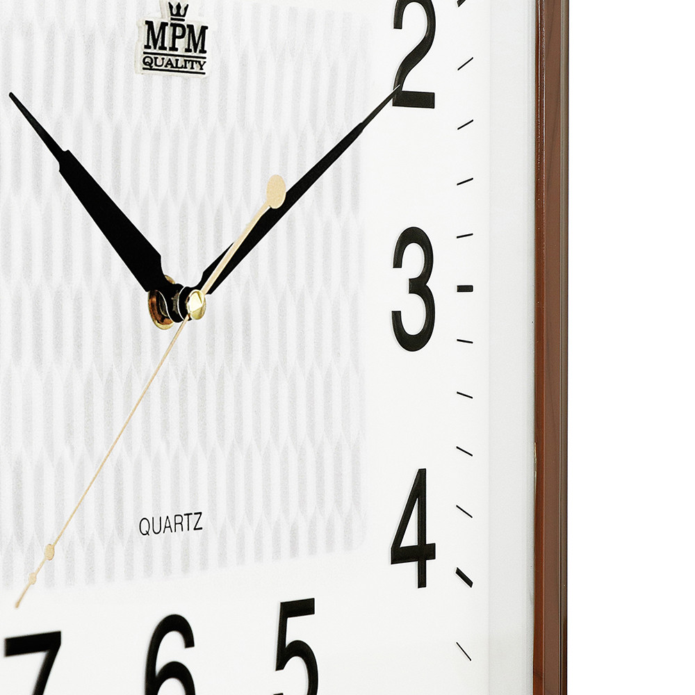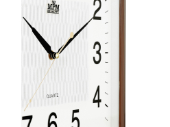 Hranaté plastové hodiny bílé/hnědé MPM Elvida - E